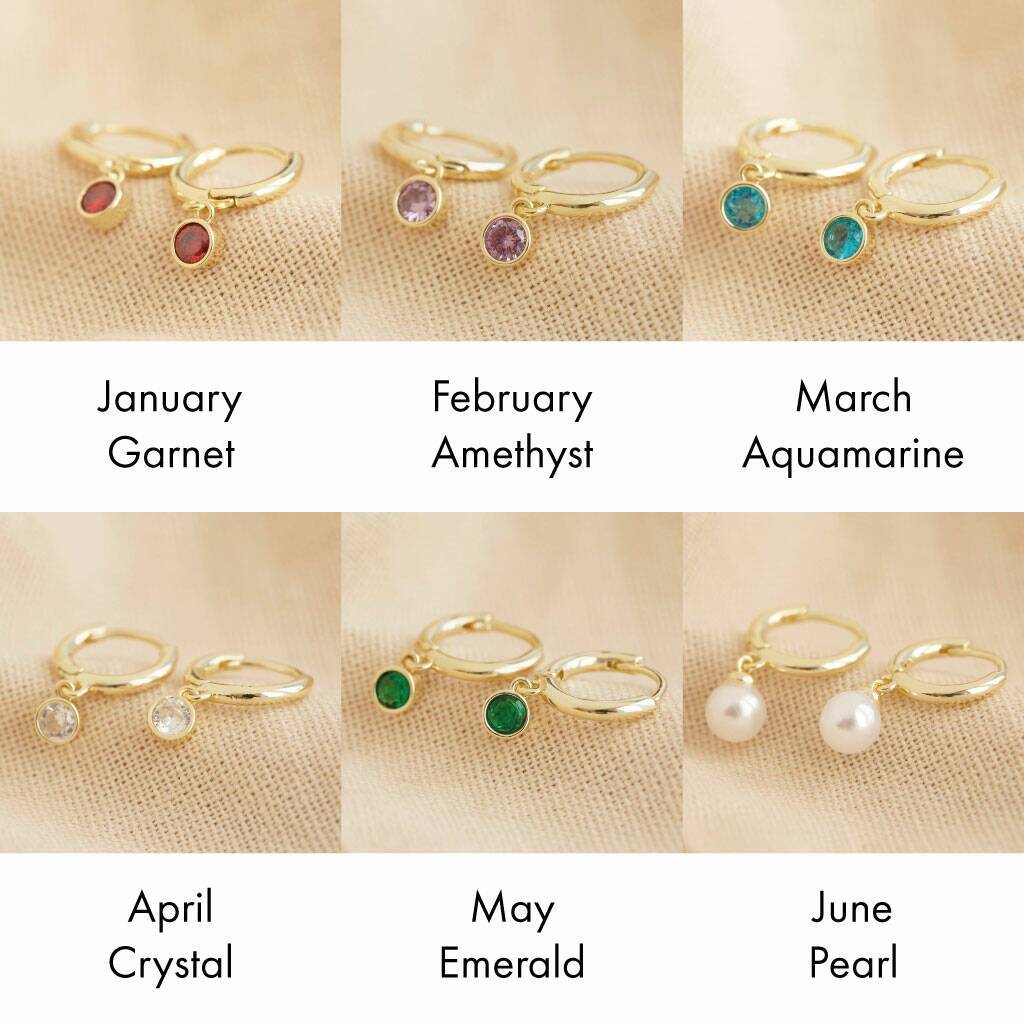 Birthstone Charm Huggie Hoop Earrings, 1 of 12