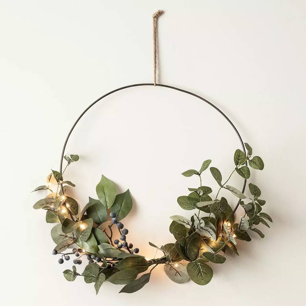 Eucalyptus Christmas Half Wreath Micro Light Bundle