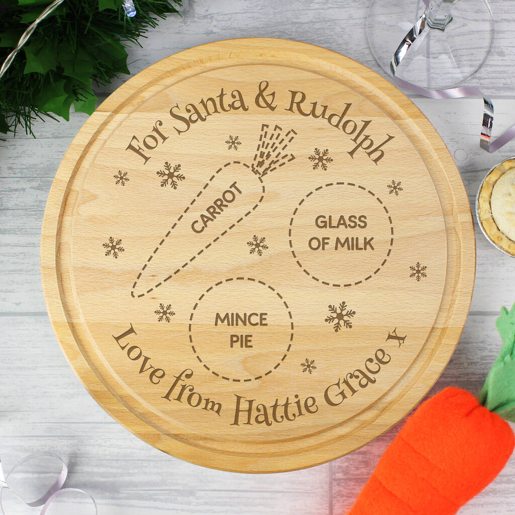 This charming Santa and Rudolph treat board provides a dedicated, personalised space to leave out those essential midnight snacks!