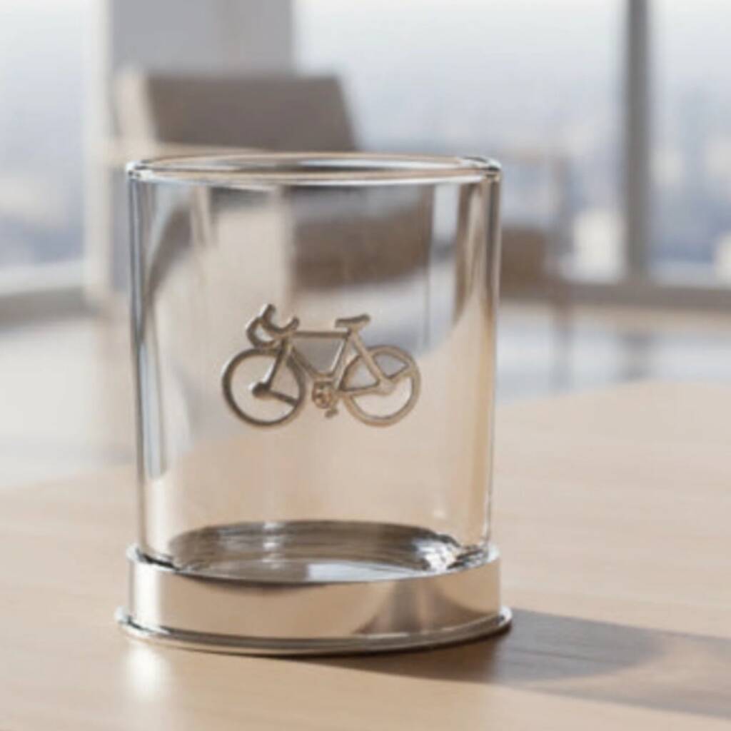 This isn't just a drinking glass; it's a bespoke piece of luxury barware crafted specifically for the dedicated cyclist in your life.