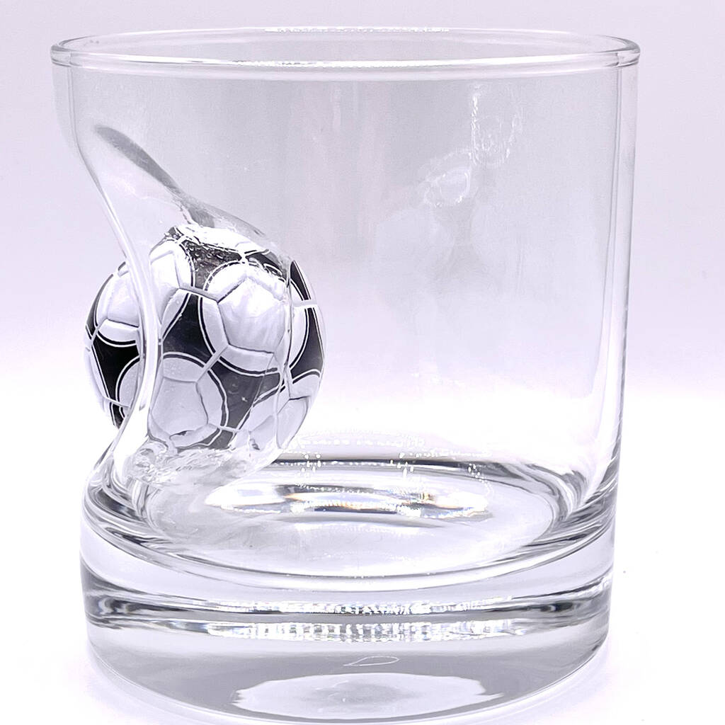 Our Personalised Football Gin Glass has a Mini Tango style Replica Football embedded into the side of the glass.