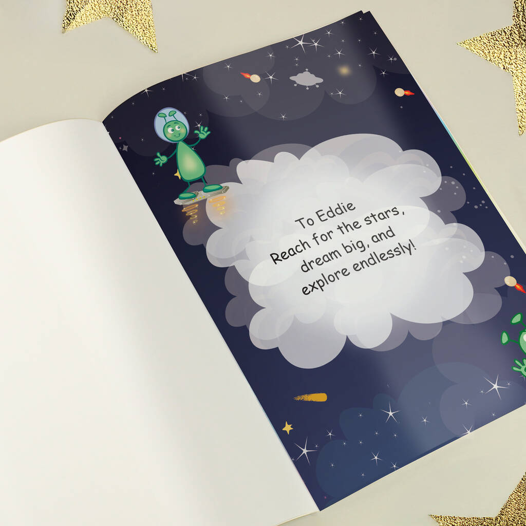 Perfect for birthdays, holidays, or encouraging reluctant readers, this custom hardback book fuels creativity and fosters a lifelong love for space and reading.