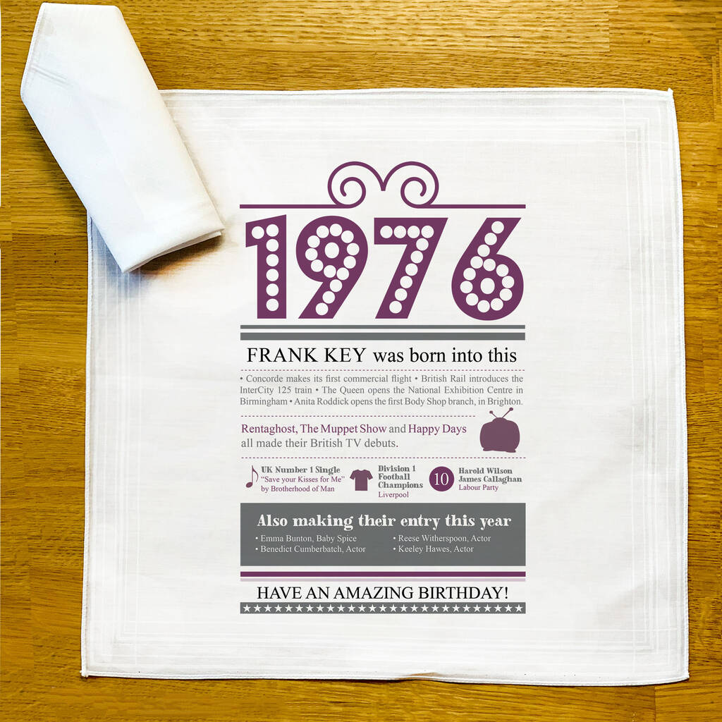 Personalised 50th Birthday 1976 Handkerchief Pair