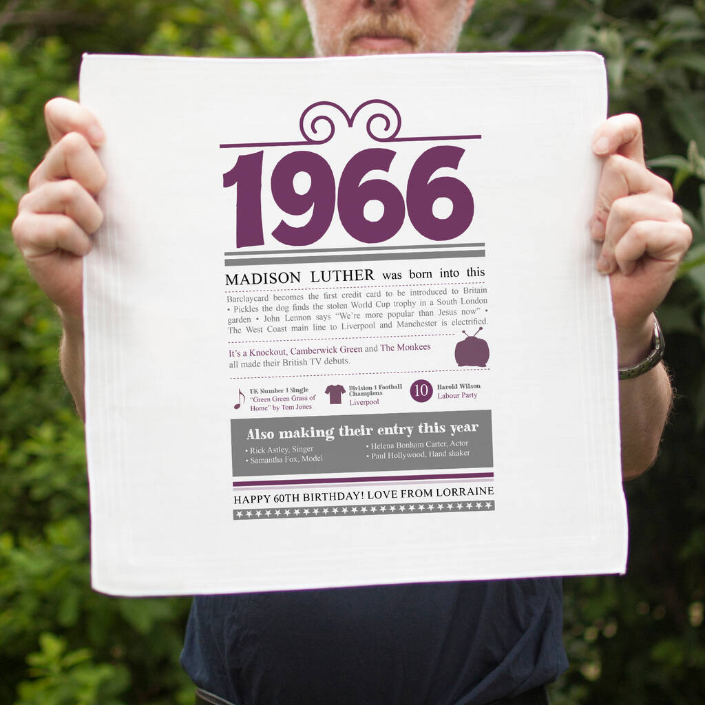 Personalised 60th Birthday 1966 Handkerchief Pair
