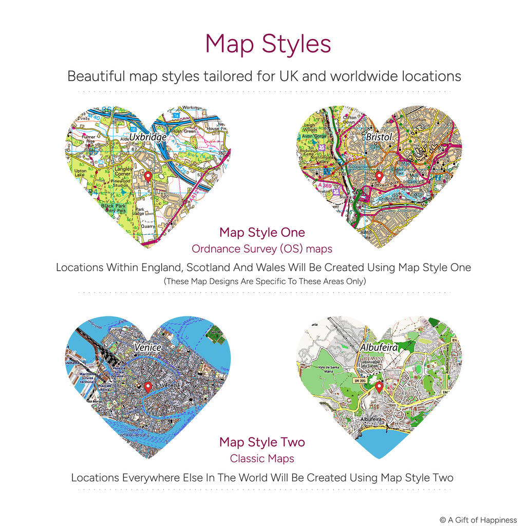 Lovingly handcrafted in our Yorkshire studio, this personalised heart map print transforms four milestones into a beautifully crafted artwork, telling your love story through the places that shaped it. Each heart map represents a cherished chapter, perhaps where you first met, the place of your proposal, your wedding venue, or another treasured location.