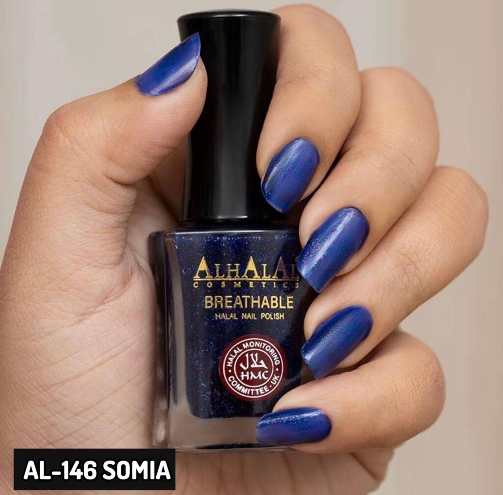 About this item : Our new peel-off nail polish lasts up to 2 days and can be removed in just one easy peel without damaging your nails, Say goodbye to messy soaking, hours of scrubbing, and expensive salon visits Our AL-146 SOMIA WATER PERMEABLE NAIL POLISH is Water based formulation free of harmful chemicals including formaldehyde, Toluene DBP ,formaldehyde Resin. Camphor , Xylene and Ethyl Toluamide. Our nail polish is not tested on animals! CRUELTY-FREE & VEGAN -- All ALHALAL Cosmetics products are 100% vegan and cruelty-free. We do not believe in testing our products or ingredients on animals. High-impact colour, ultra-shiny finish HALAL AND WUDHU/ABLUTION FRIENDLY -- This product does not contain any animal derivatives or prohibited alcohols. Our nail polishes have been tested and certified as halal and Wudhu friendly. 11-FREE FORMULA -- This nail polish does not contain: formaldehyde, formaldehyde resin, toluene, camphor, DBP, xylene, parabens or many other harsh chemicals. Our products are formulated without the top 11 harshest chemicals found in a typical nail polish BREATHABLE -- formula allows water to permeate through the nail polish, keeping nails healthy and hydrated. Quick drying - Ready to go in under 60 seconds Certified by HALAL monitoring committee united kingdom, Curtly free,light weight formula, Smooth free , Rich Color, Free From Nasty Colors, Clinically Approved Contain Neither Alcohol or Aerosol Makeup Benefits: High Pigmentation, Matte Finish. Halal Ingredients Used: Water, polyurethane-1, sodium dodecylbenzenesulfonate, acrylic acid (ester)/ VA copolymer, slachonium bentonite, calcium gluconate, phenoxyethanol, CI 15850,CI 15880. Al Halal Cosmetics are made of according to Islamic principles and are considered halal, or permissible, for use by Muslims. These cosmetics do not contain any ingredients that are prohibited in Islam, such as alcohol or animal-derived substances, and are produced in accordance with Islamic laws and regulations. 1. They Can Provide The Same High-Quality Performance, Color And Finish As Non-Halal water permeable nail polish. 2. Using Halal Products Can Also Be A Way To Support The Halal Industry And Companies That Align With One'S Personal Values 3. They Are Free Of Ingredients That Are Considered Haram (Forbidden) In Islam Such As Pork Or Alcohol Derivatives. 4. They Do Not Include Animal-Derived Ingredients Or By-Products, Making Them Suitable For Vegans And Vegetarians. 5. They Are Cruelty-Free, Meaning That No Animal Testing Is Performed On The Final Product Or Any Of Its Ingredients. SPECIAL FEATURE : The Halal Certification Process Also Ensures That The Manufacturing Process And The Facility Meet Certain Standards Of Hygiene, Safety And Environmental Protection.