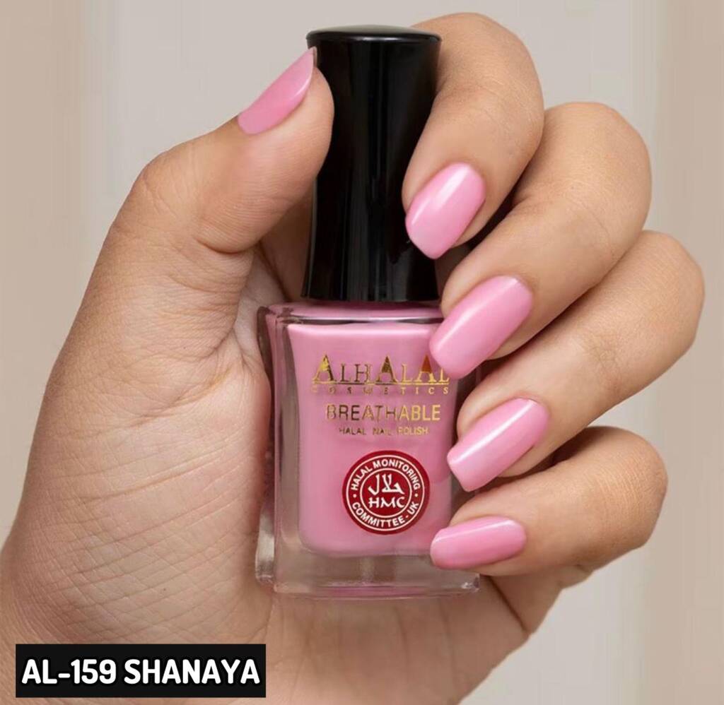 About this item : Our new peel-off nail polish lasts up to 2 days and can be removed in just one easy peel without damaging your nails, Say goodbye to messy soaking, hours of scrubbing, and expensive salon visits Our AL-159 SHANAYA WATER PERMEABLE NAIL POLISH is Water based formulation free of harmful chemicals including formaldehyde, Toluene DBP ,formaldehyde Resin. Camphor , Xylene and Ethyl Toluamide. Our nail polish is not tested on animals! CRUELTY-FREE & VEGAN -- All ALHALAL Cosmetics products are 100% vegan and cruelty-free. We do not believe in testing our products or ingredients on animals. High-impact colour, ultra-shiny finish HALAL AND WUDHU/ABLUTION FRIENDLY -- This product does not contain any animal derivatives or prohibited alcohols. Our nail polishes have been tested and certified as halal and Wudhu friendly. 11-FREE FORMULA -- This nail polish does not contain: formaldehyde, formaldehyde resin, toluene, camphor, DBP, xylene, parabens or many other harsh chemicals. Our products are formulated without the top 11 harshest chemicals found in a typical nail polish BREATHABLE -- formula allows water to permeate through the nail polish, keeping nails healthy and hydrated. Quick drying - Ready to go in under 60 seconds Certified by HALAL monitoring committee united kingdom, Curtly free,light weight formula, Smooth free , Rich Color, Free From Nasty Colors, Clinically Approved Contain Neither Alcohol or Aerosol Makeup Benefits: High Pigmentation, Matte Finish. Halal Ingredients Used: Water, polyurethane-1, sodium dodecylbenzenesulfonate, acrylic acid (ester)/ VA copolymer, slachonium bentonite, calcium gluconate, phenoxyethanol, CI 15850,CI 15880. Al Halal Cosmetics are made of according to Islamic principles and are considered halal, or permissible, for use by Muslims. These cosmetics do not contain any ingredients that are prohibited in Islam, such as alcohol or animal-derived substances, and are produced in accordance with Islamic laws and regulations. 1. They Can Provide The Same High-Quality Performance, Color And Finish As Non-Halal water permeable nail polish. 2. Using Halal Products Can Also Be A Way To Support The Halal Industry And Companies That Align With One'S Personal Values 3. They Are Free Of Ingredients That Are Considered Haram (Forbidden) In Islam Such As Pork Or Alcohol Derivatives. 4. They Do Not Include Animal-Derived Ingredients Or By-Products, Making Them Suitable For Vegans And Vegetarians. 5. They Are Cruelty-Free, Meaning That No Animal Testing Is Performed On The Final Product Or Any Of Its Ingredients. SPECIAL FEATURE : The Halal Certification Process Also Ensures That The Manufacturing Process And The Facility Meet Certain Standards Of Hygiene, Safety And Environmental Protection.