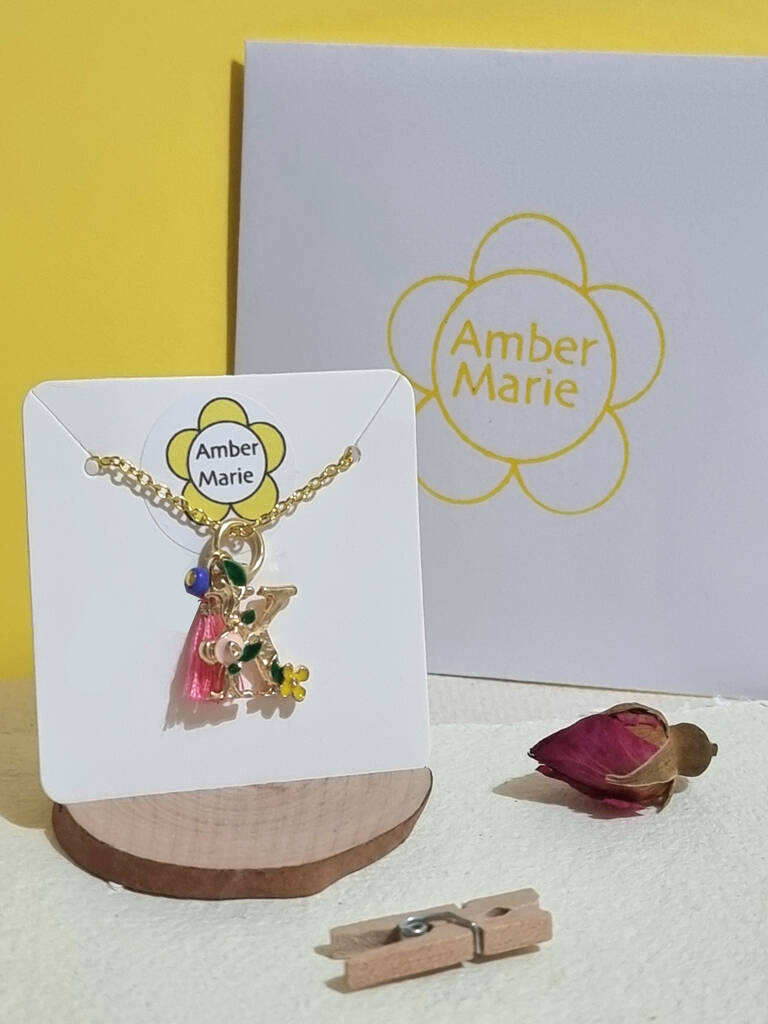 Floral Initial Tassel Necklace Stand Up Gift In Box