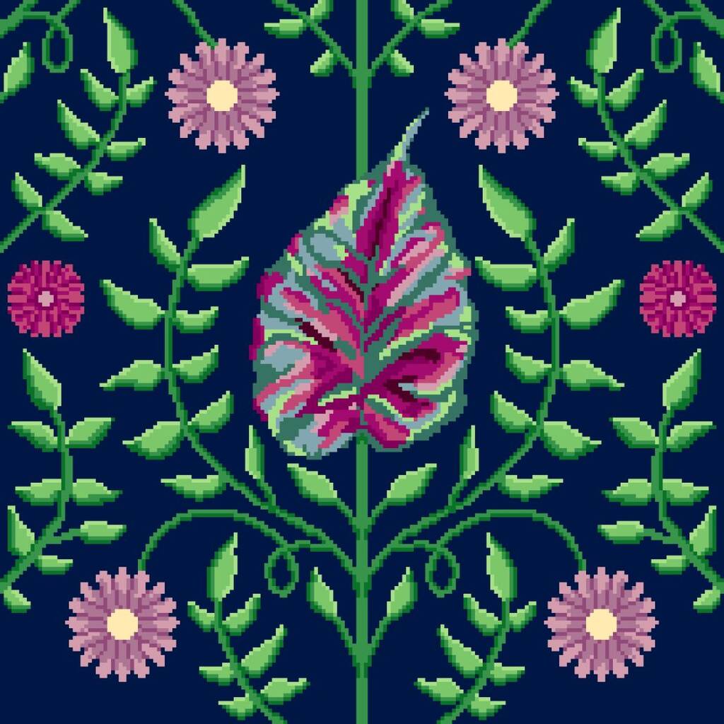 Containing everything necessary to complete the kit, including needles, Zweigart printed canvas (12 hpi), 100% British wool in 15 different colours, a detailed instruction leaflet and a needle. Finished piece measures 40 x 40cm which equates to 189 x 189 stitches and is completed using tent stitch. NB: should you wish to turn it into a cushion cover, extra fabric will be required.