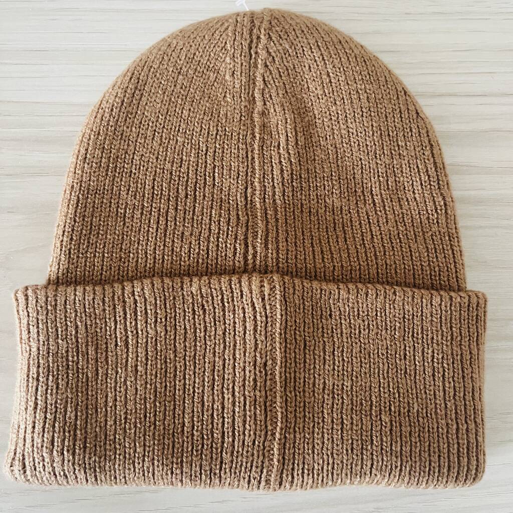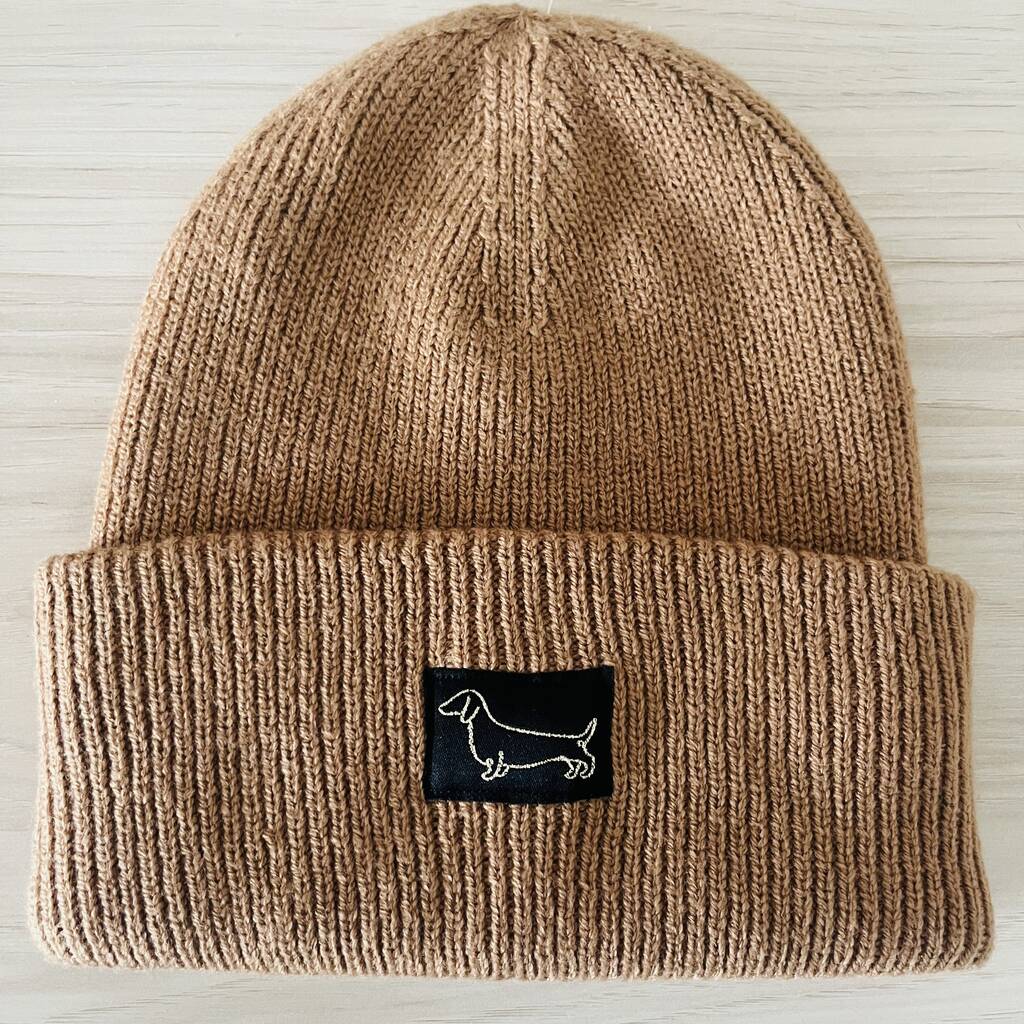 Deep Cuff Tan Beanie With Embroidered Dachshund