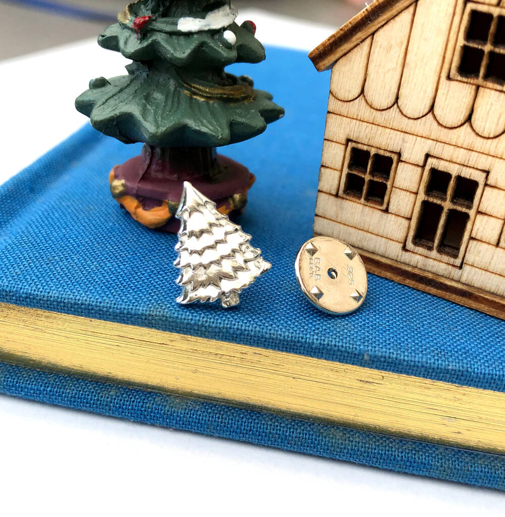 Celebrate the wonder of the holiday season with this sterling silver Christmas tree pin brooch, thoughtfully handmade to bring a touch of classic charm to any winter outfit.
