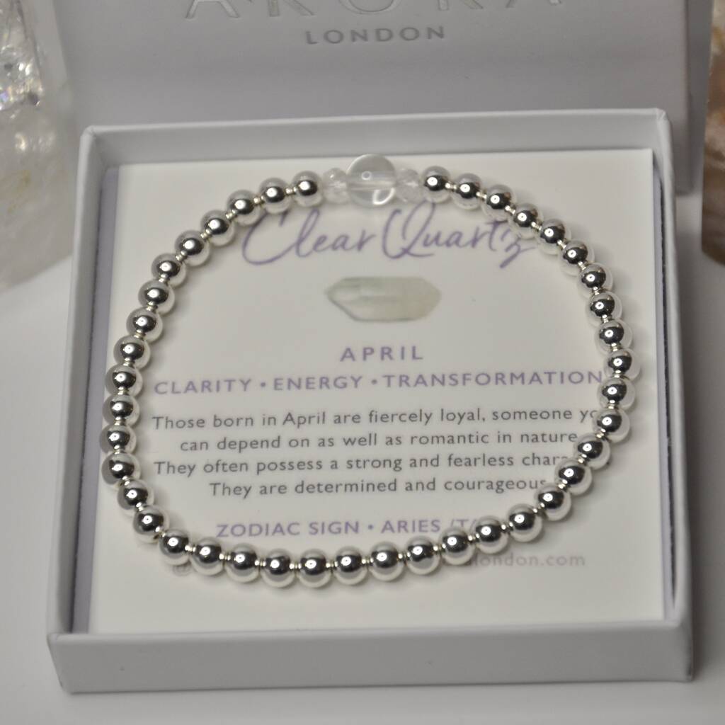 April Birthstone Sterling Silver Bead Bracelet Gift