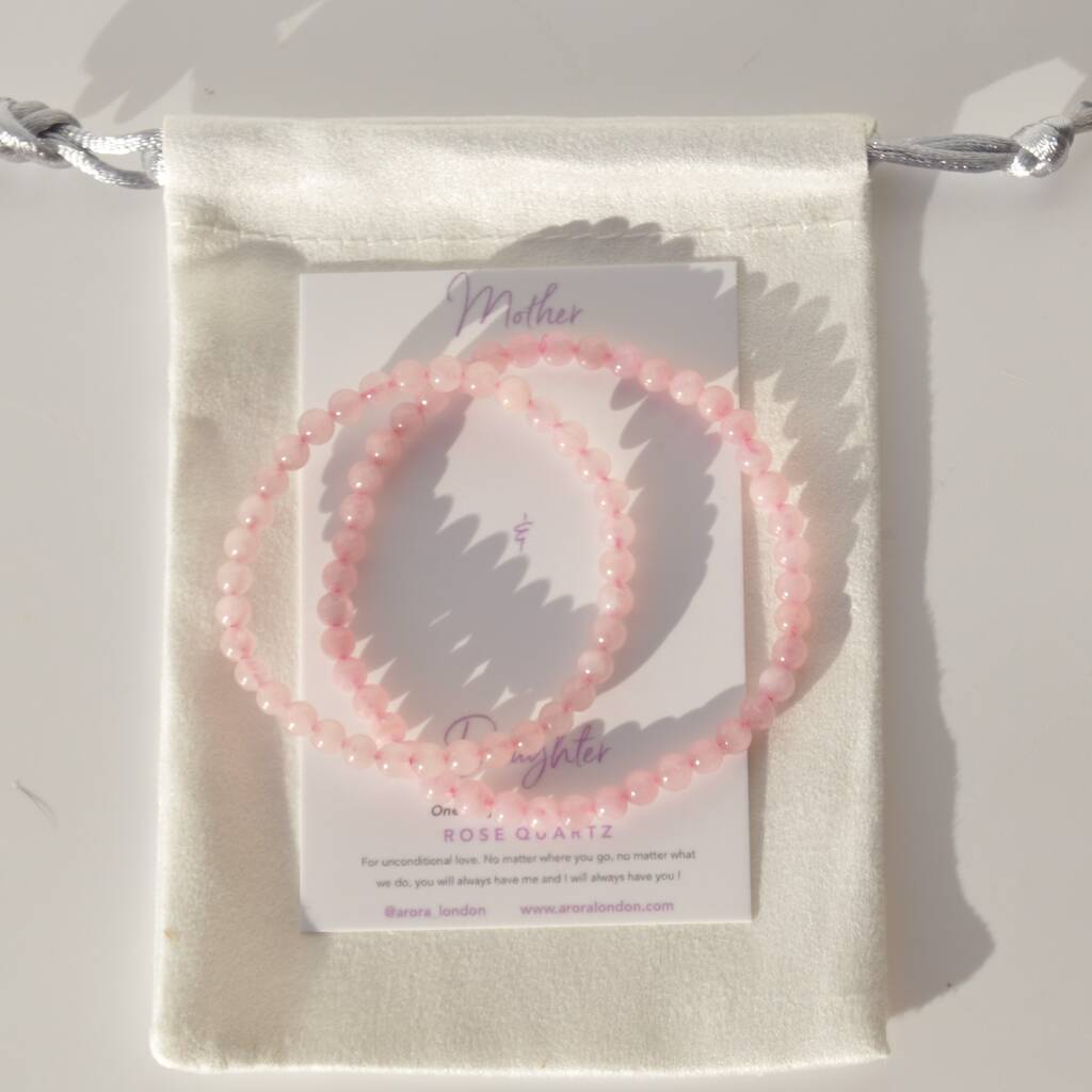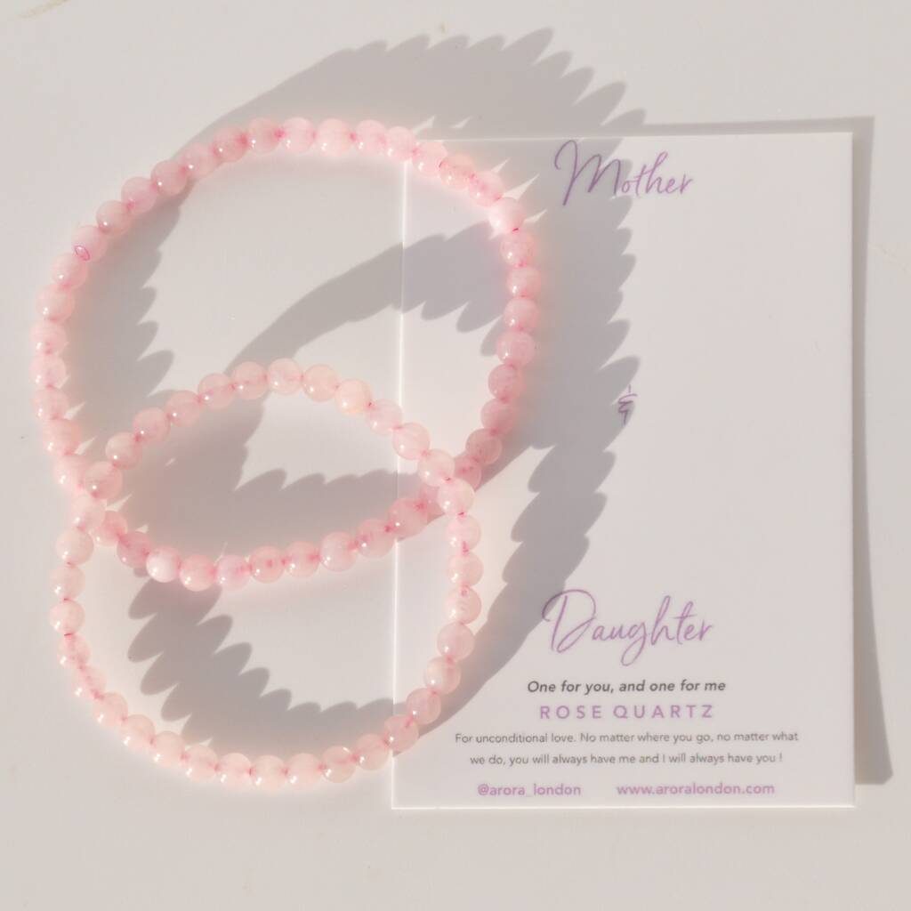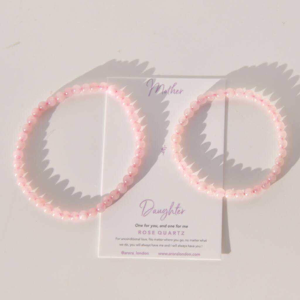 • Mother And Daughter Rose Quartz Crystal Bracelet Set, thumbnail 6 of 7