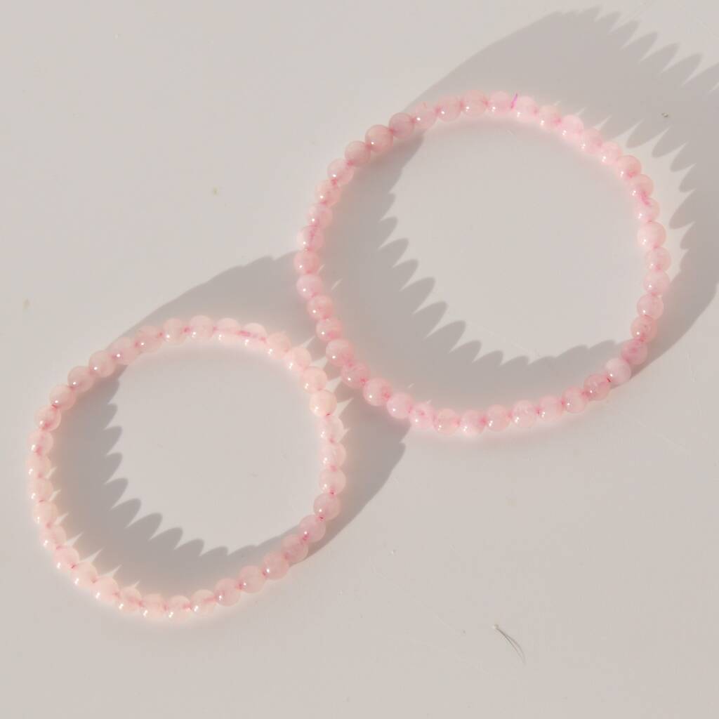 Mother And Daughter Rose Quartz Crystal Bracelet Set