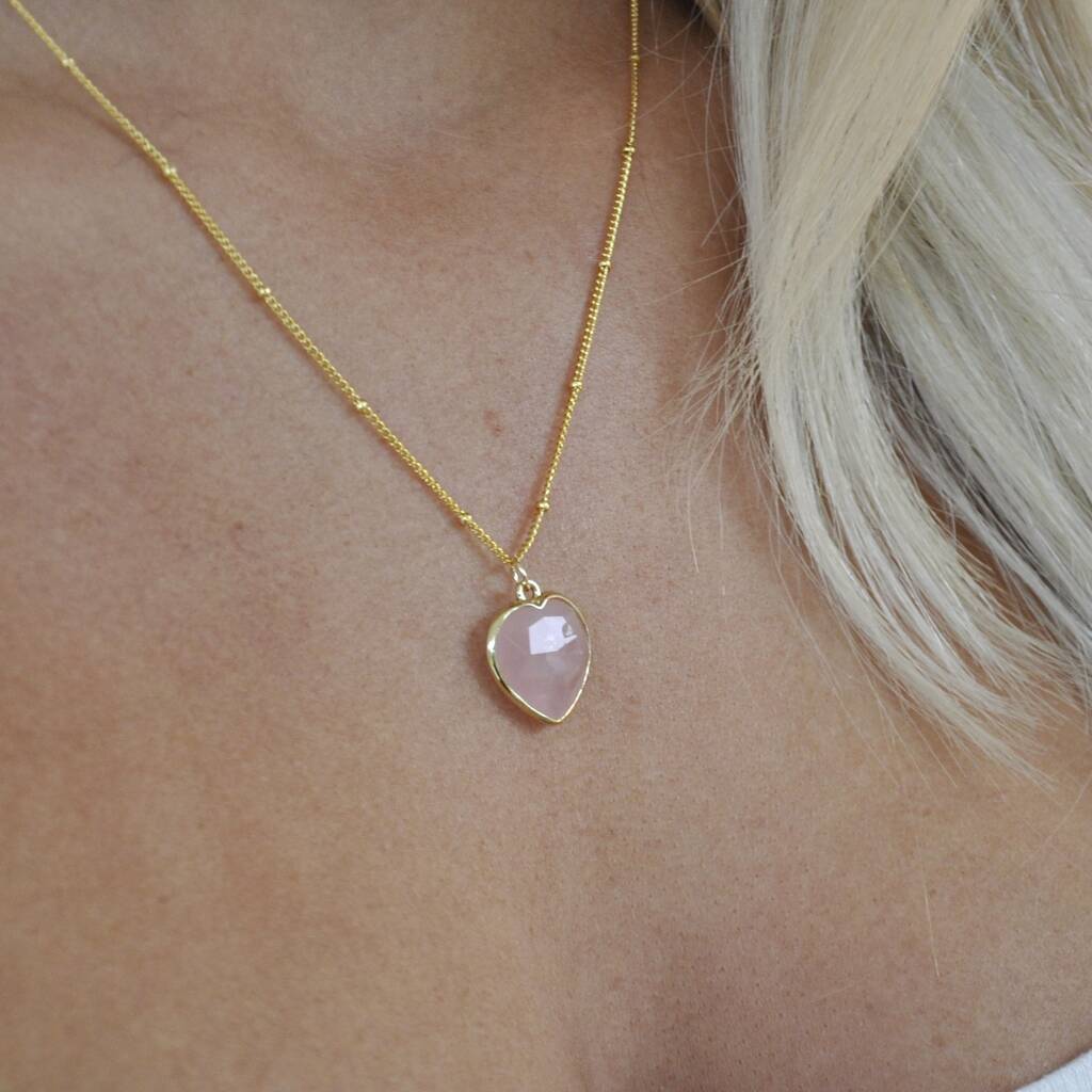 Rose Quartz Crystal Heart Necklace Gift For Her, 1 of 3
