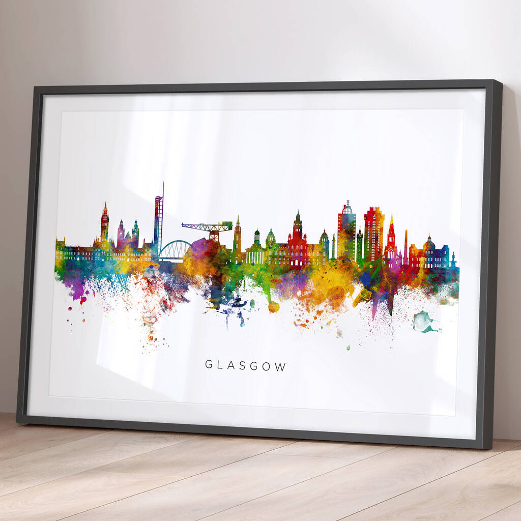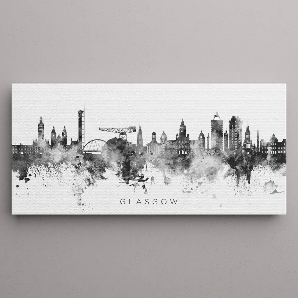 Glasgow Skyline Cityscape Black And White Art Print