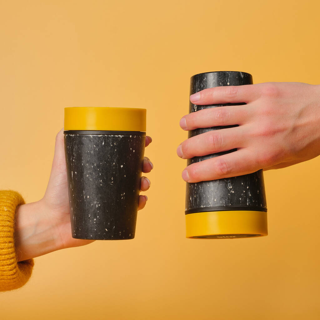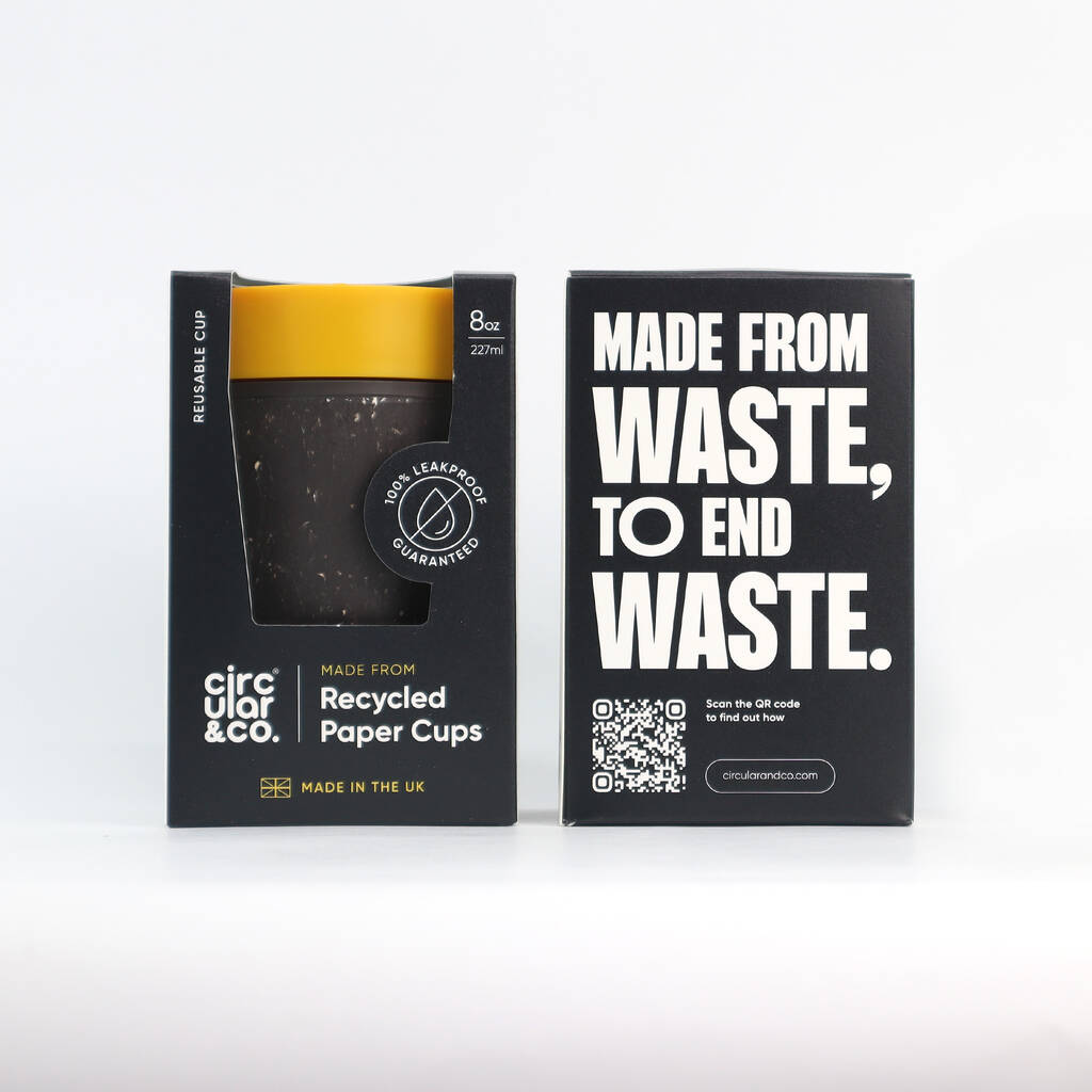 Circular And Co Coffee Cup Made From Paper Cups 8oz Grey And Mustard