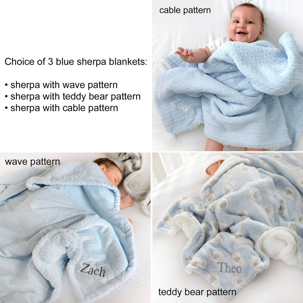 Personalised Blue Sherpa Baby Blanket