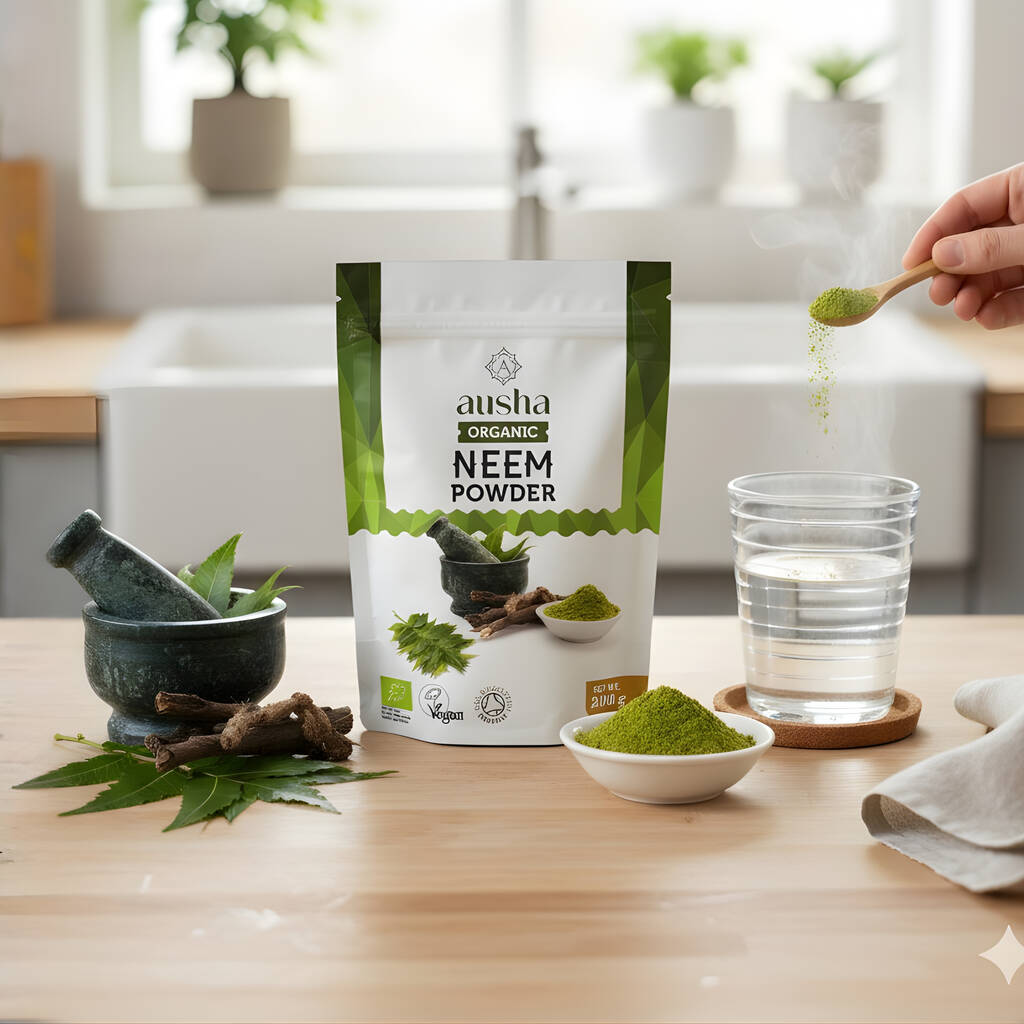 - Adding Neem Powder to your lifestyle is as simple as adding a scoop to your favourite smoothie or water upon raising.
