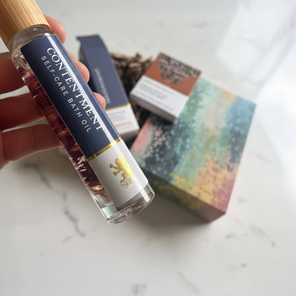 Contentment Bath Oil : Sink into a bath of roses. Melt away the stress of the day and promote an overall sense of wellbeing. This self-care oil is blended to replenish your mind, relax your body and leave a veil of silk on your skin. A lovely fragrant bath to soothe the spirits with blackcurrants, bergamot and middle notes of rose with jasmine. Ingredients: Prunus Amygdalus Dulcis (Sweet Almond) Oil, Parfum, Benzyl salicylate, Geraniol, Linalool, d-Limonene, dl-Citronellol, Dried Red Rose Petals.