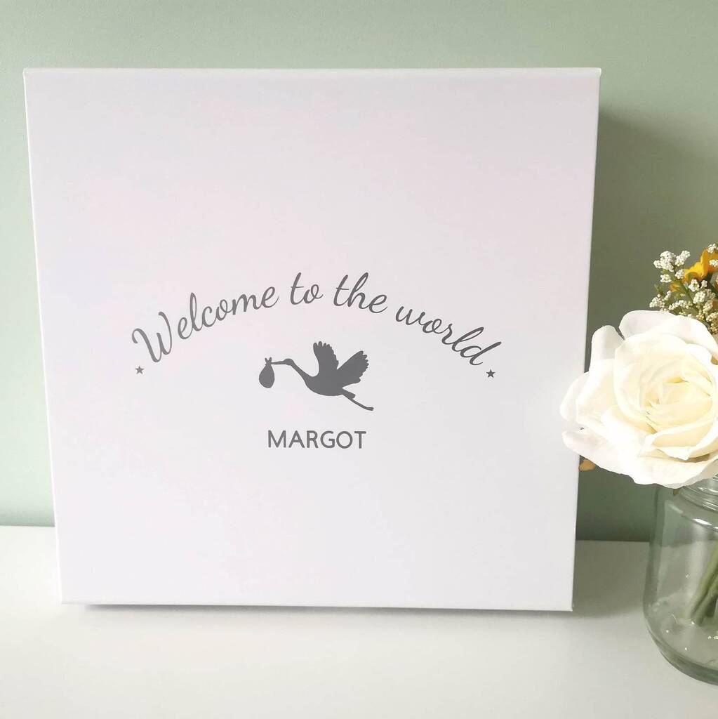 The items come packaged in a luxury keepsake box which can be personalised with baby's name on (Welcome to the world with a stork - see photos).