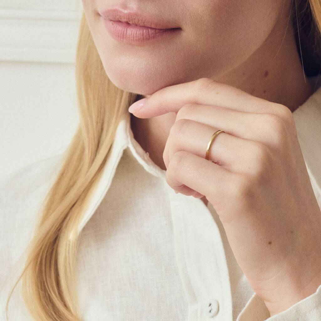 Classic 9ct Yellow Gold D Shape Wedding Band Ring 2mm