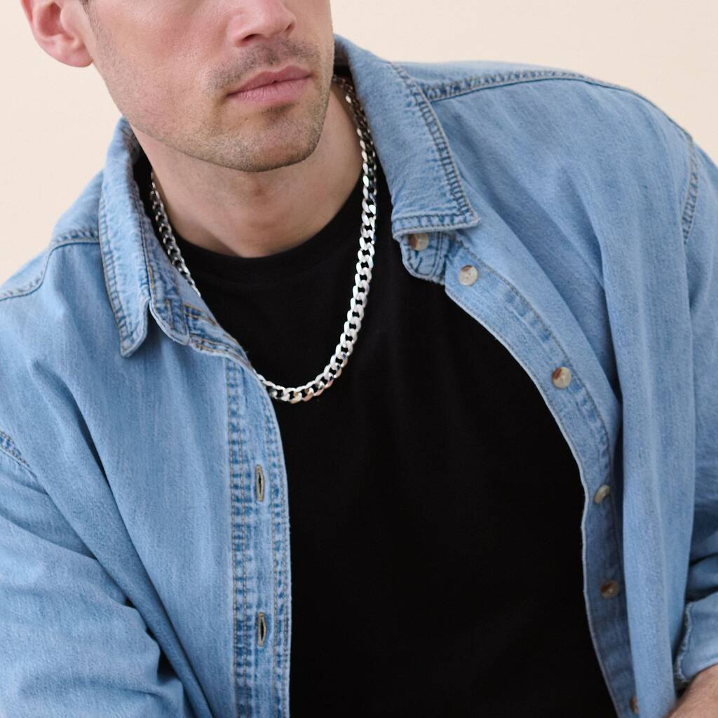 Sterling Silver Curb Chain 9mm Necklace 22 Inch, 1 of 4