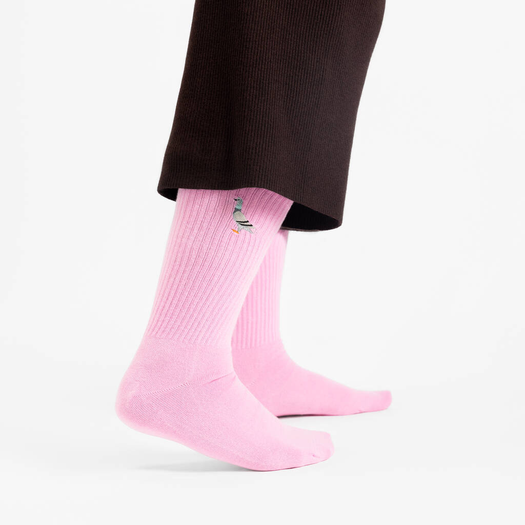 Pigeon Socks Embroidered Unisex Cotton Ribbed Crew Socks