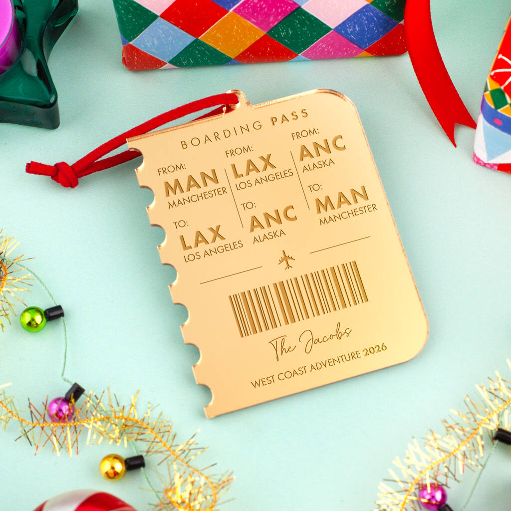Personalised Three Flights Boarding Pass Christmas Bauble