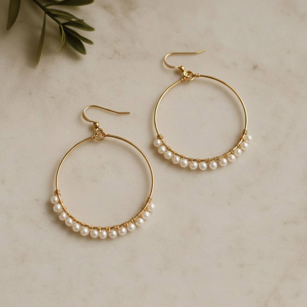 Elegant pearl hoop bridal earrings handmade in gold filled or sterling silver — modern, lightweight, and timeless for brides who love refined simplicity.