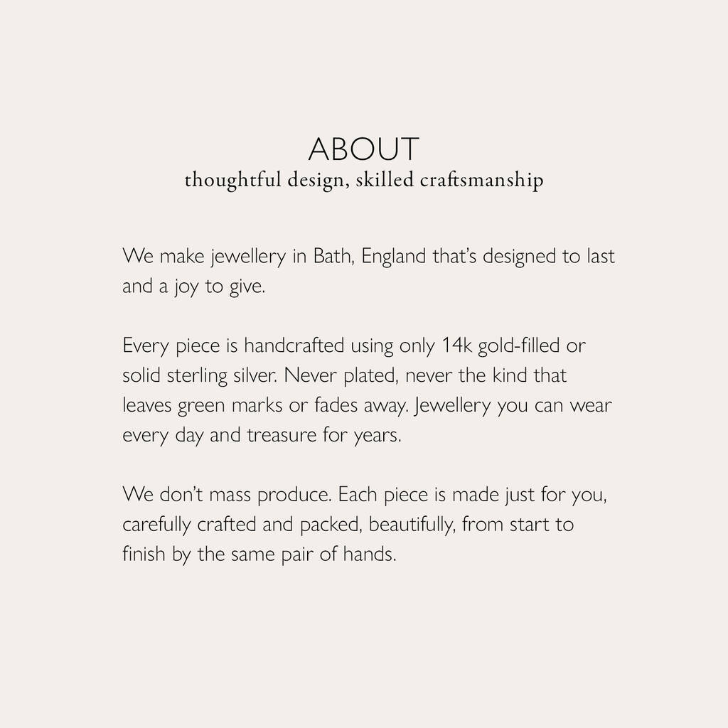 14k Gold Filled: A thick layer of real gold pressure-bonded to a base metal for a rich, warm tone and exceptional durability. Gold filled jewellery offers the beauty of solid gold at a more accessible price.