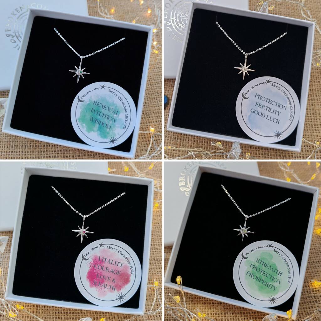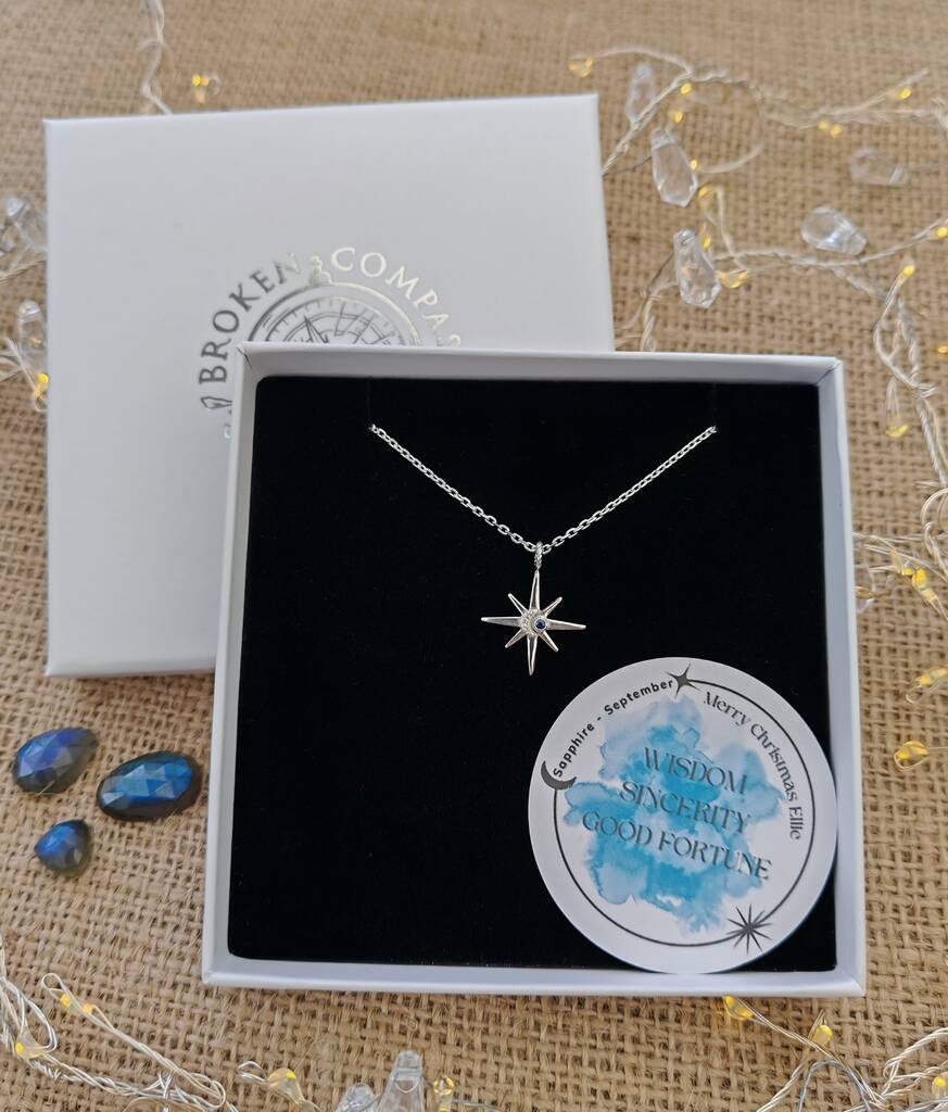 Handmade Sterling Silver North Star Birthstone Christmas Necklace: September Birthstone, 1 of 12