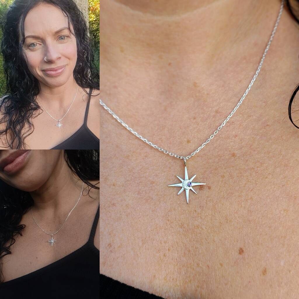 • Handmade Sterling Silver North Star Birthstone Christmas Necklace: September Birthstone, thumbnail 2 of 12