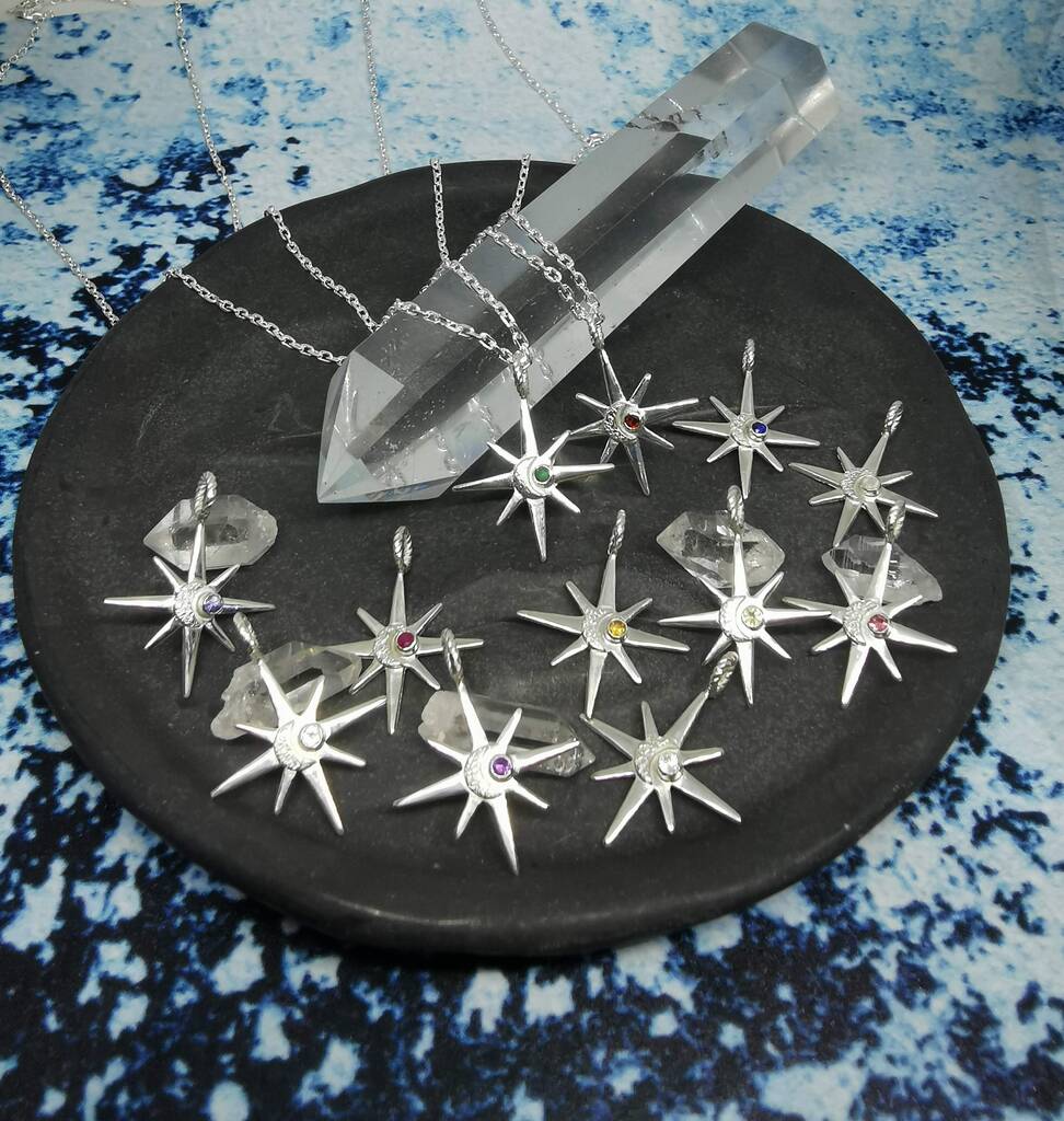 Handmade Sterling Silver North Star Birthstone Christmas Necklace: September Birthstone