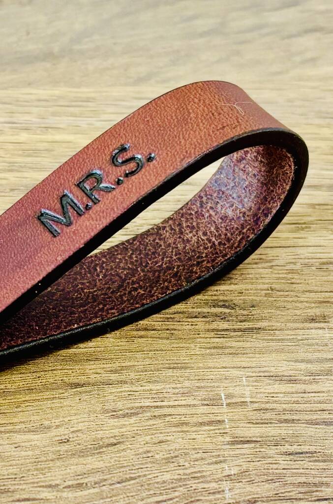Each keyring is handmade, hand dyed and slightly different as every piece of leather is unique as leather has natural blemishes and marks. The Spanish Brown colour is made to give the old and distressed look.
