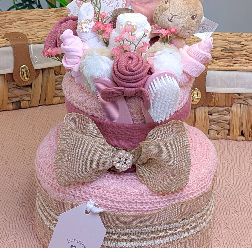 Two Tier Vintage Deluxe Beatrix Potter Baby Nappy Cake