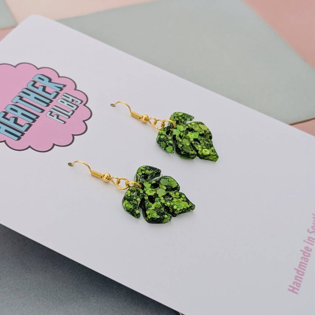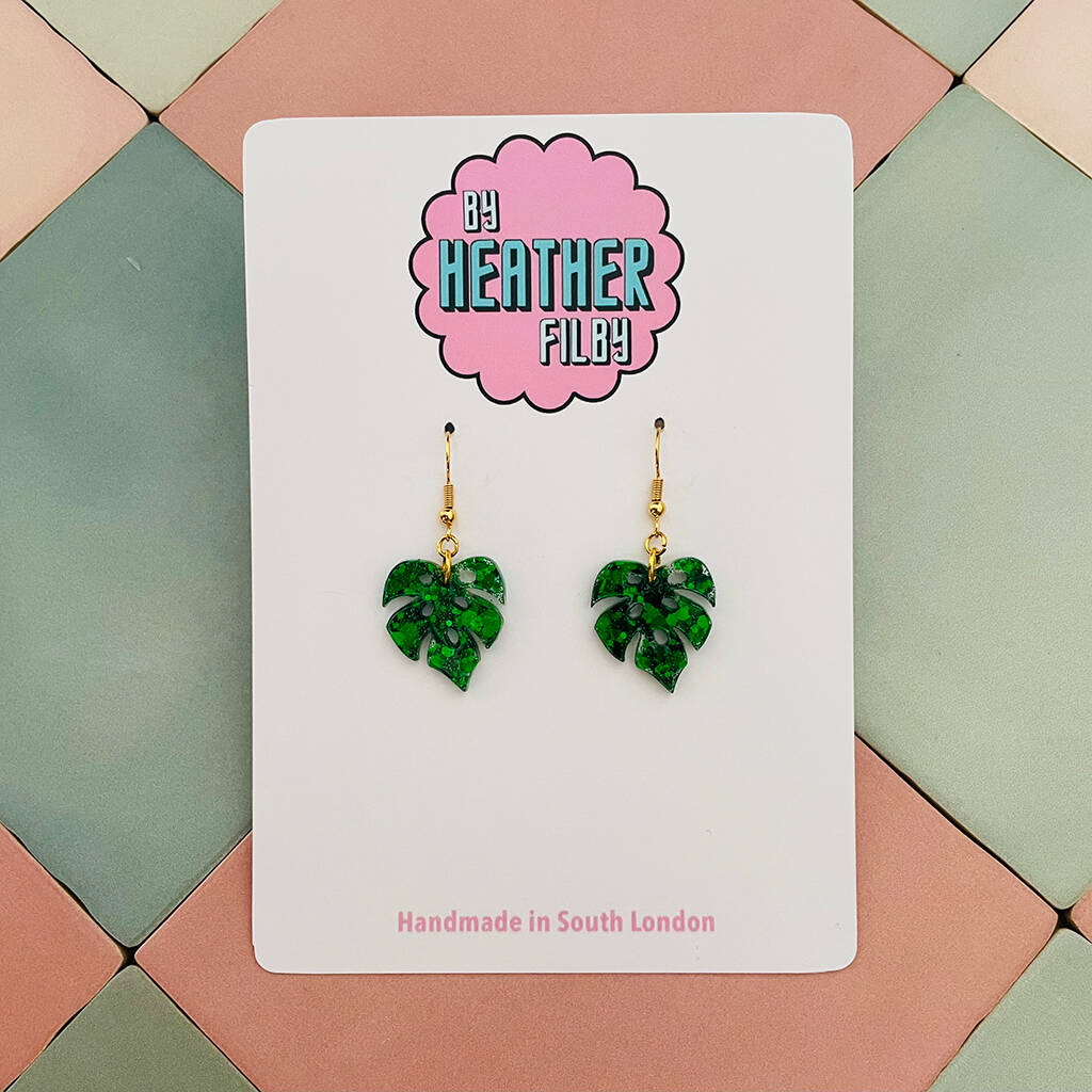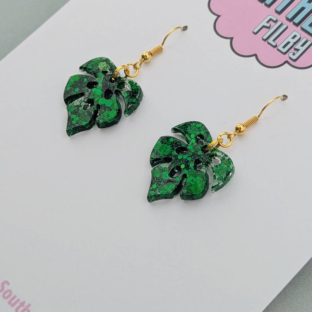 Monstera Leaf Glitter Earrings *More Colours Available*