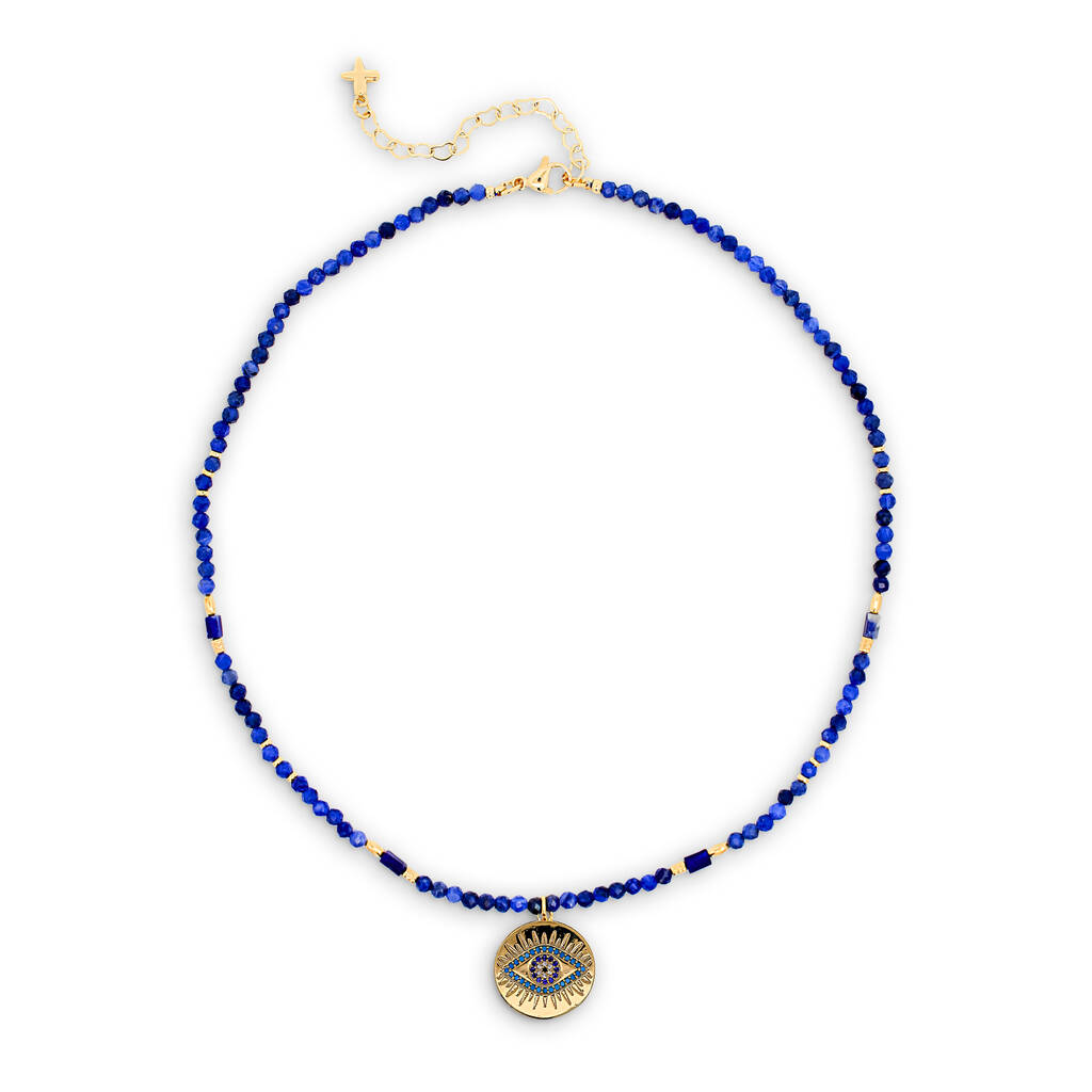 Blue Natural Stones And Coin Charm Evil Eye Pendant