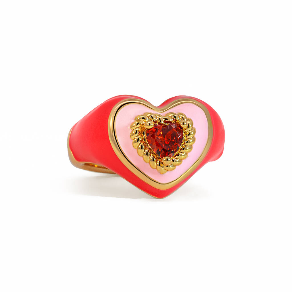 Dark Pink Love Heart Enamel Ring