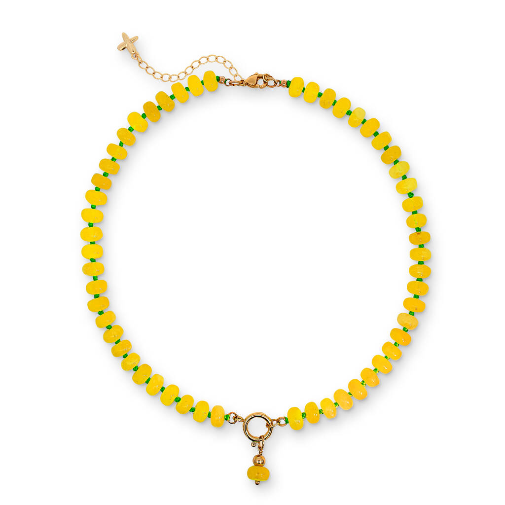 Neon Yellow Jade Stone Natural Beaded Necklace