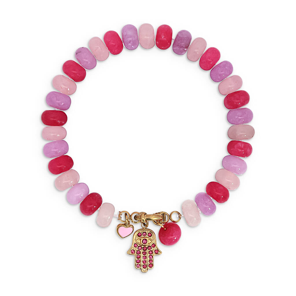 Pink And Purple Jade Stone Beaded Charm Bracelet