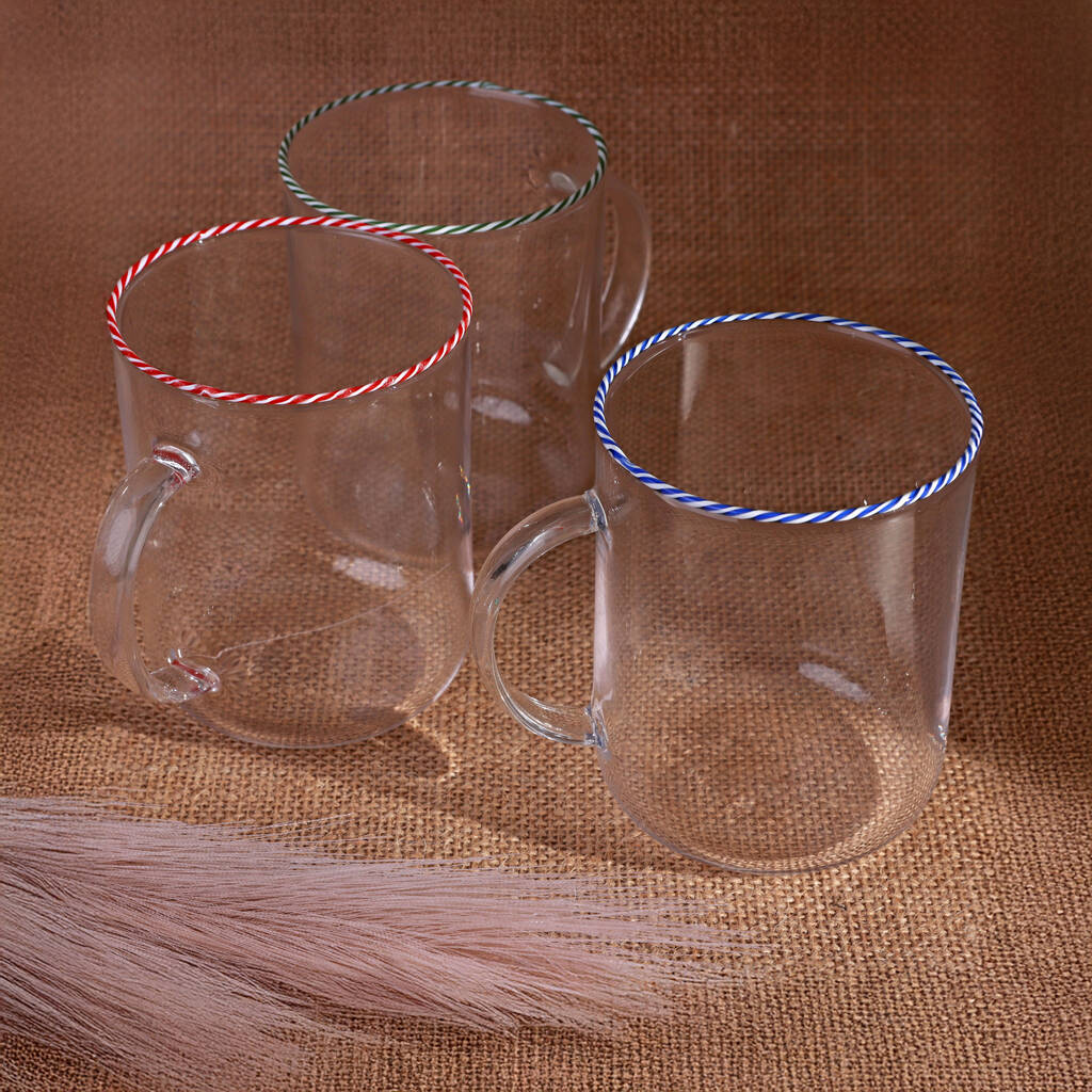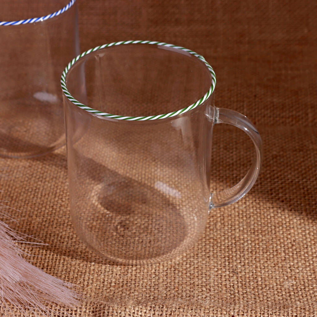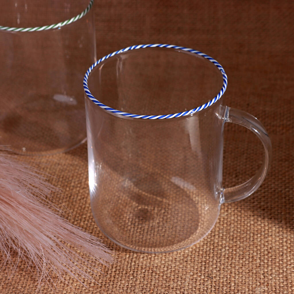 The Twist Rim Handcrafted Glassware Collection captures that balance, combining the clarity of pure glass with the gentle swirl of colour along its edge. Red, blue, and green twist rims crown each cup like a subtle ribbon, framing the drink within as though it were a work of art. Every piece begins as molten glass, shaped by skilled hands that know how to coax elegance from the smallest details. The twist is not just colour; it is movement – a graceful spiral that catches the light with every turn of the cup. In red, it brings warmth and vibrancy; in blue, a cool, coastal calm; in green, the freshness of a quiet garden. The collection invites to choose – a single hue for serene harmony, or a medley of all three for a playful, lively table. These are cups for moments, both everyday and exceptional: a morning tea enjoyed before the world awakes, a mid-afternoon coffee savoured slowly, or an iced drink on a warm evening, the condensation tracing patterns across the glass. The beauty lies in their versatility – delicate enough for special occasions, yet strong enough for daily use. And always, that twist at the rim reminding you that beauty can live in the smallest of details. Microwave safe and dishwasher safe for effortless use and care.