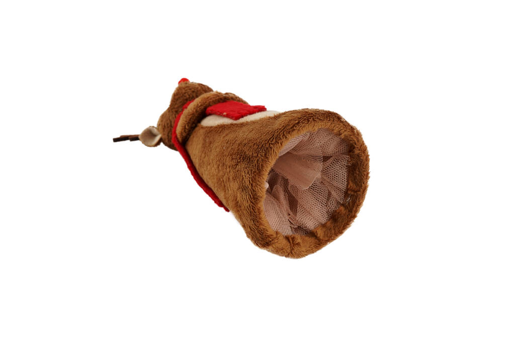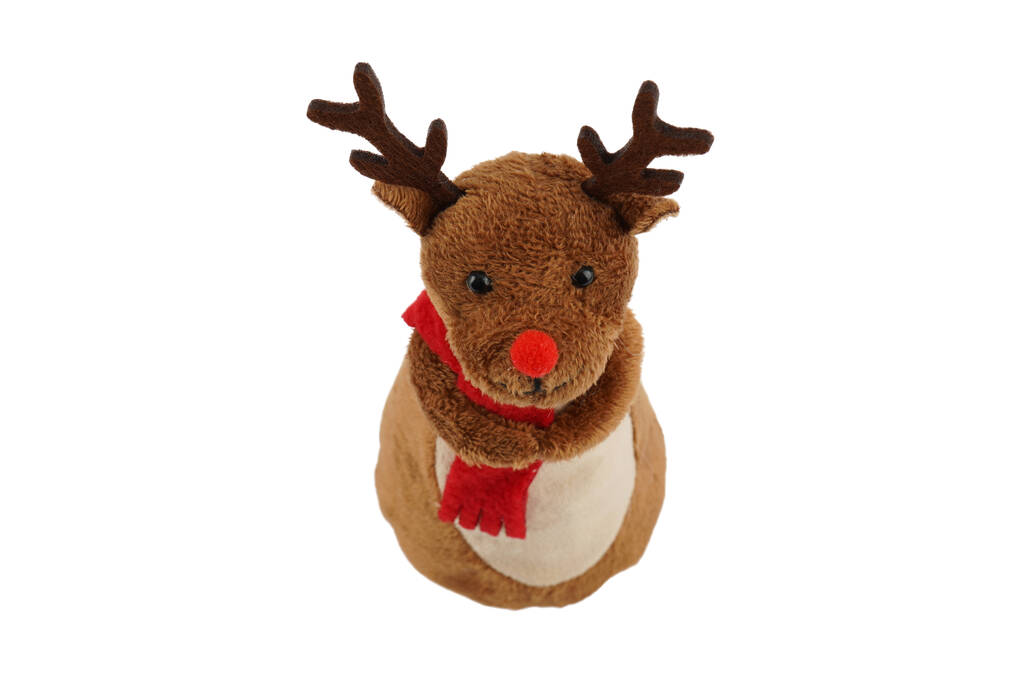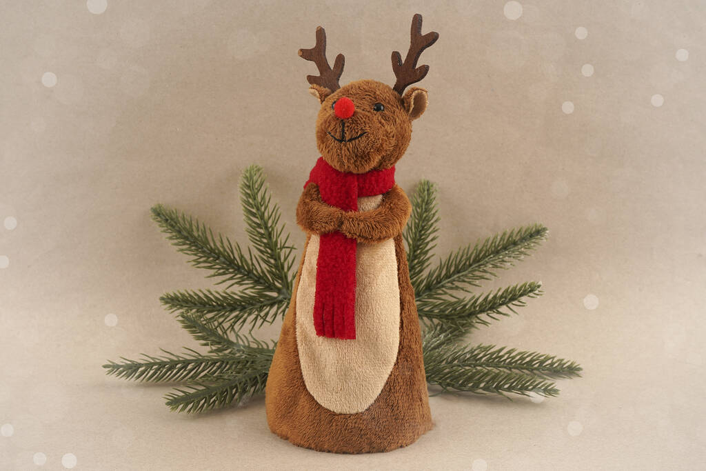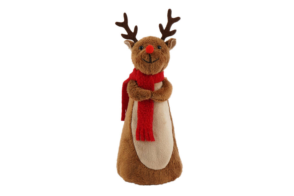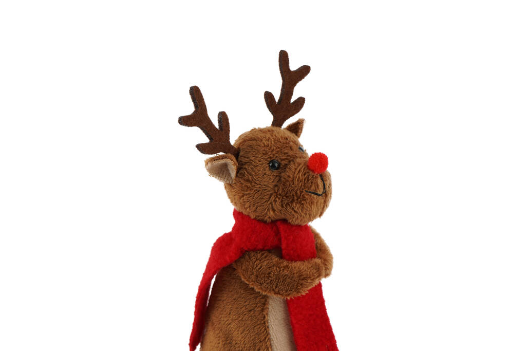 Made from ultra-soft materials, this reindeer tree topper features a snuggly brown body, velvety antlers, and a cute red nose — the perfect finishing touch to your Christmas tree.