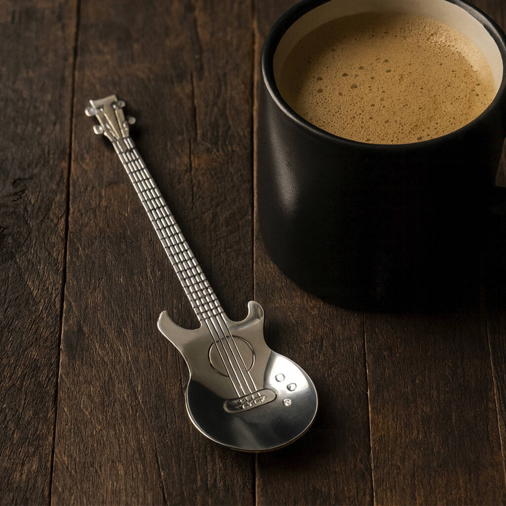 Each spoon features a unique guitar design, blending everyday practicality with a playful musical twist.
