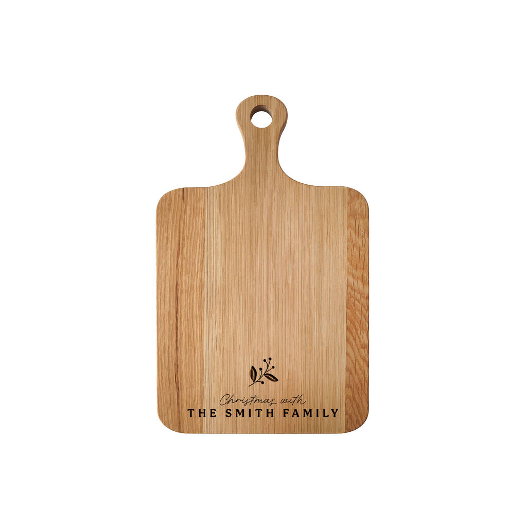 This charming cheeseboard features a beautifully engraved mistletoe illustration, perfectly capturing the magic of the season. At the centre, there’s space to personalise with your family name — for example, “Christmas with the Smiths” — creating a unique keepsake that’s full of festive spirit. Each board is made to order, adding warmth and character to your Christmas celebrations or year-round entertaining.