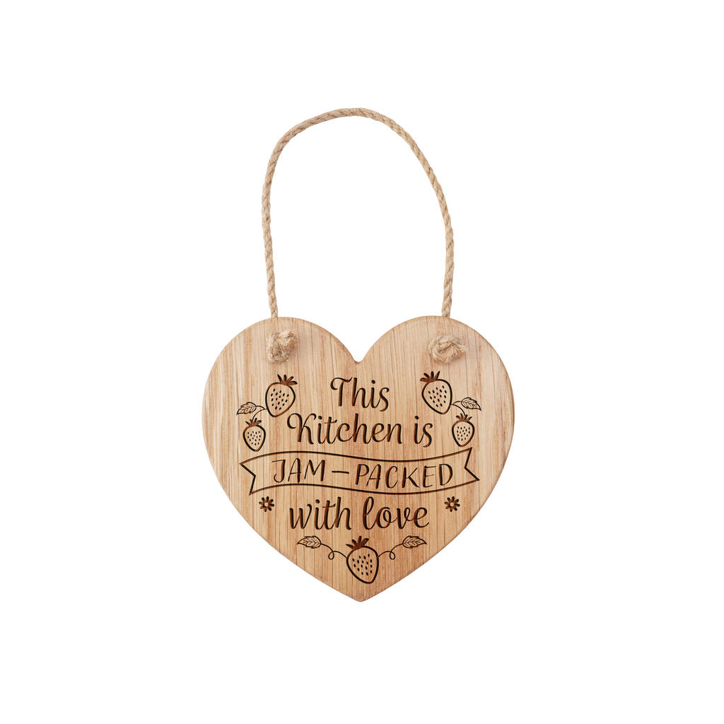 • Oak Hanging Heart 'This Kitchen Is Jam Packed…' | Wall Sign | Perfect Gift | Home Decor, thumbnail 1 of 2