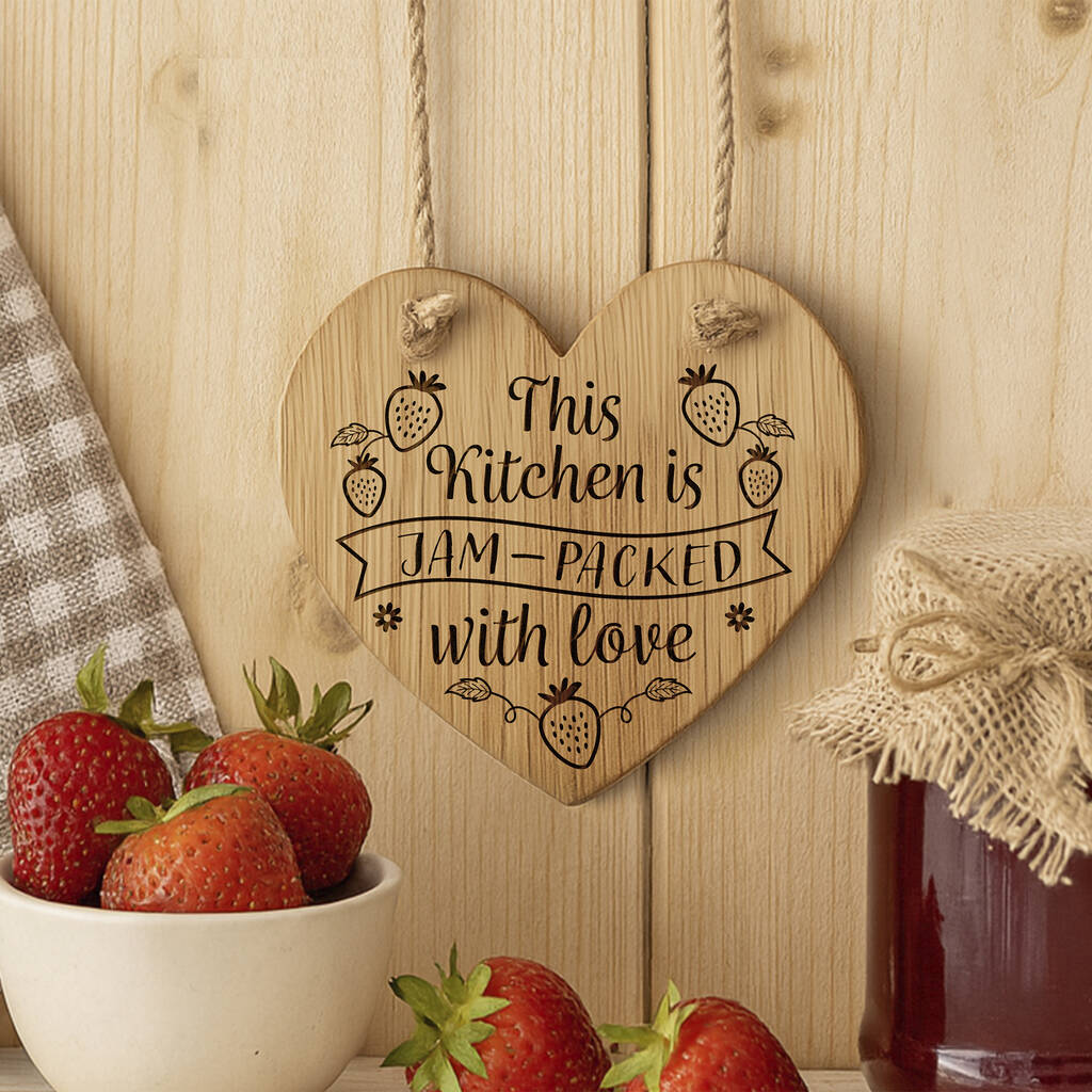 Oak Hanging Heart 'This Kitchen Is Jam Packed…' | Wall Sign | Perfect Gift | Home Decor