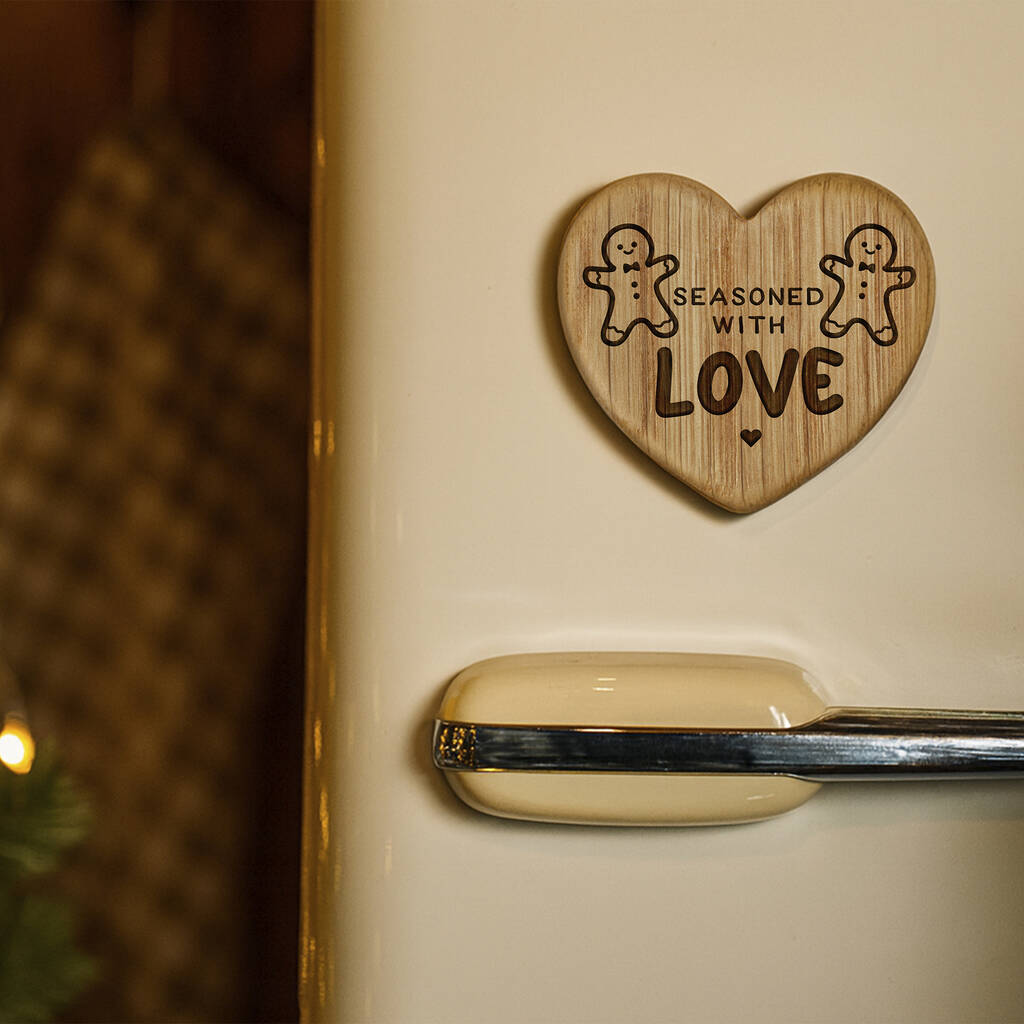 The magnet features an enchanting heart shape, symbolising love and warmth. On its surface, the sweet and uplifting slogan "Seasoned With Love" is beautifully engraved and sweet illustration. This simple yet powerful message makes this magnet a perfect addition to your kitchen, reminding everyone that love truly enhances the flavour of every moment.