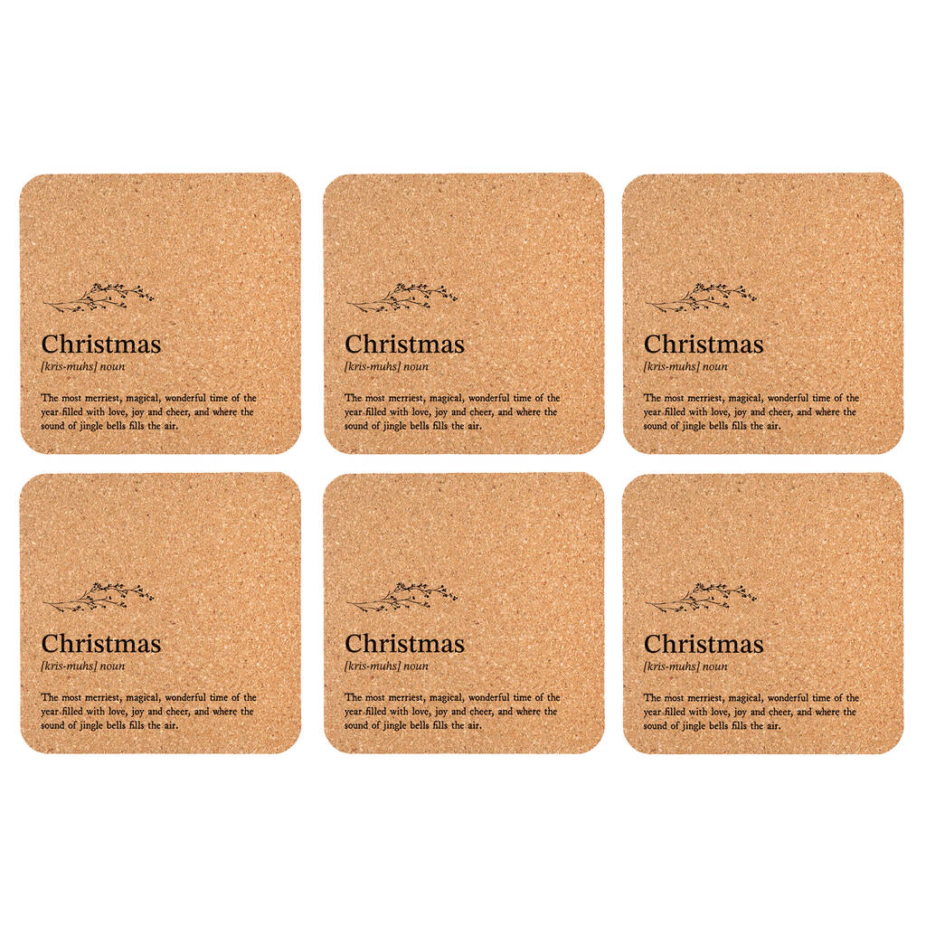 • Set Of Six 'Christmas' Cork Coasters | Homeware | Tableware | Festive, thumbnail 1 of 3