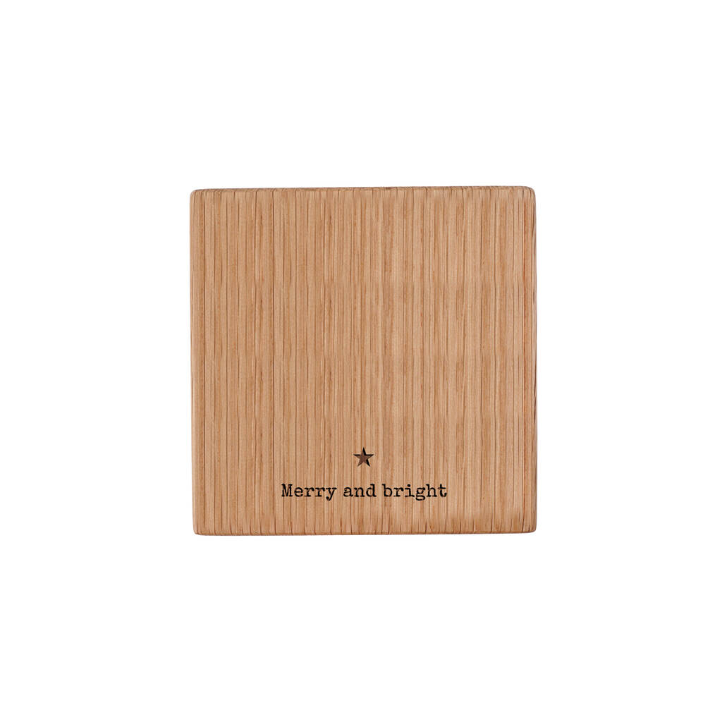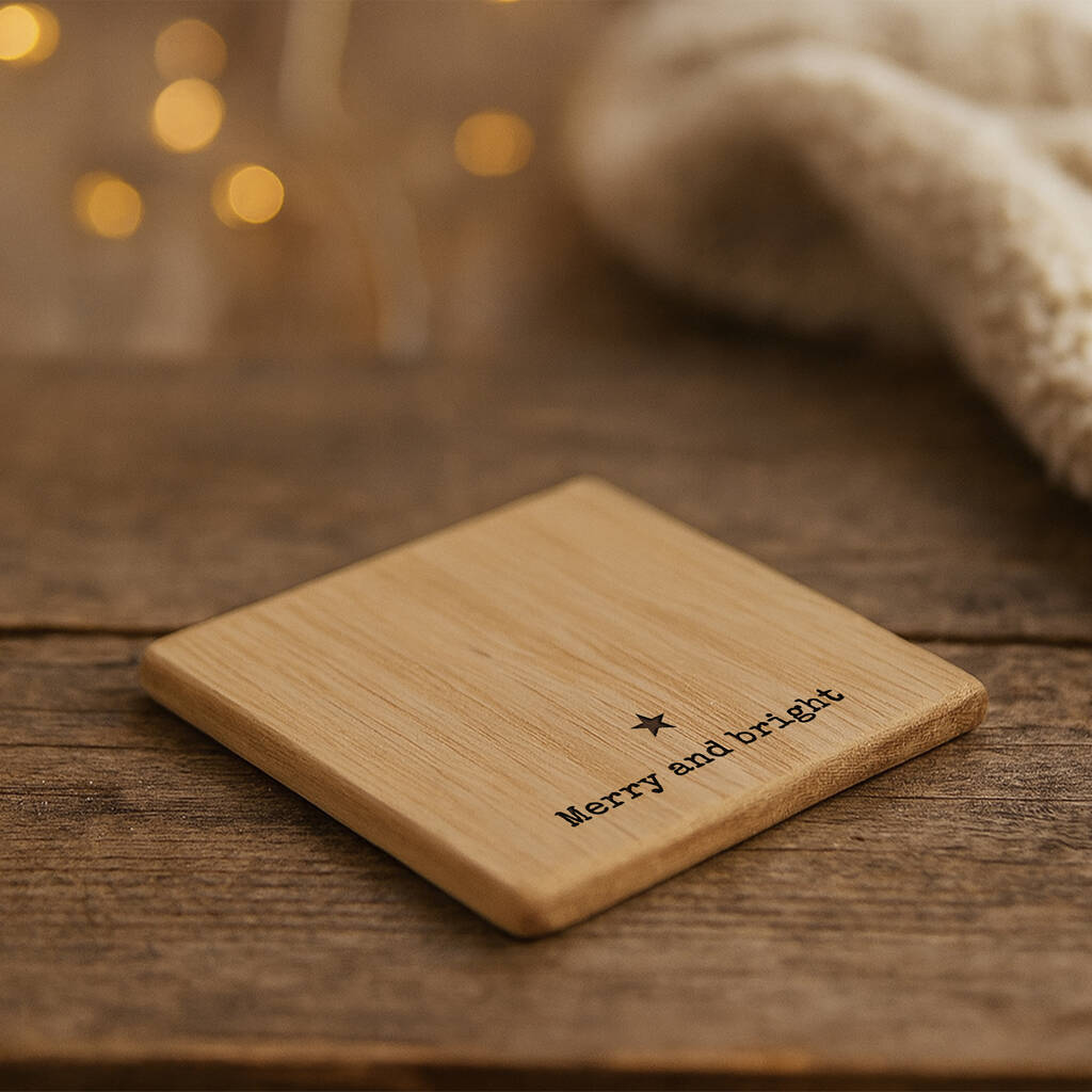 Square Oak Coaster | 'Merry And Bright' | Christmas Table Decor | Coffee Table Coaster | Festive Drink Coaster | Seasonal Design | Gift